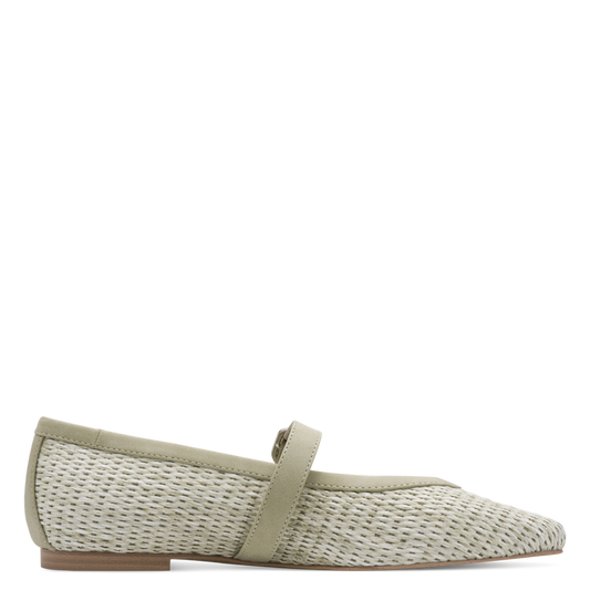 Marco Tozzi Raffia Mary Jane Flat Pump - Moss Green