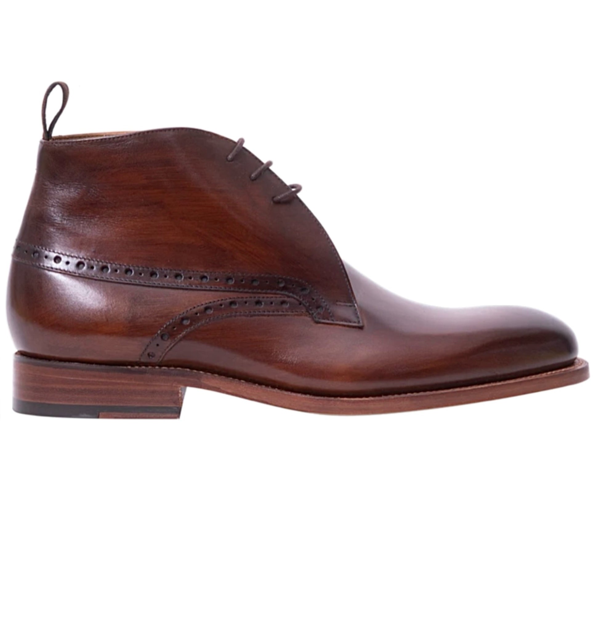 The Chukka boot is an ankle high boot traditionally featuring three pairs of eyelets, calfskin uppers and rounded toes.