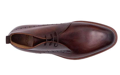 The uppers are made from unfinished European crust which is hand stained and paired with a premium Italian leather sole injected with high grade rubber to give added durability, whilst keeping the neat lines of a full leather sole. They feature punched decorative detailing (originally designed to allow water to drain from the boot) and a stunning antique wooden effect that has been hand brushed and then stitched to perfection by our new factory based in India."