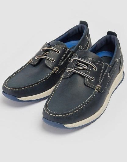 The RILEY features a moccasin toe and perforation detailing for a sporty boat shoe silhouette. Set on a lightweight thermo-rubber sole that adds extra comfort and durability for everyday wear, this pair is ideal for casual styling. Designed in premium Italian leather with contrasting decorative leather lace side detail.