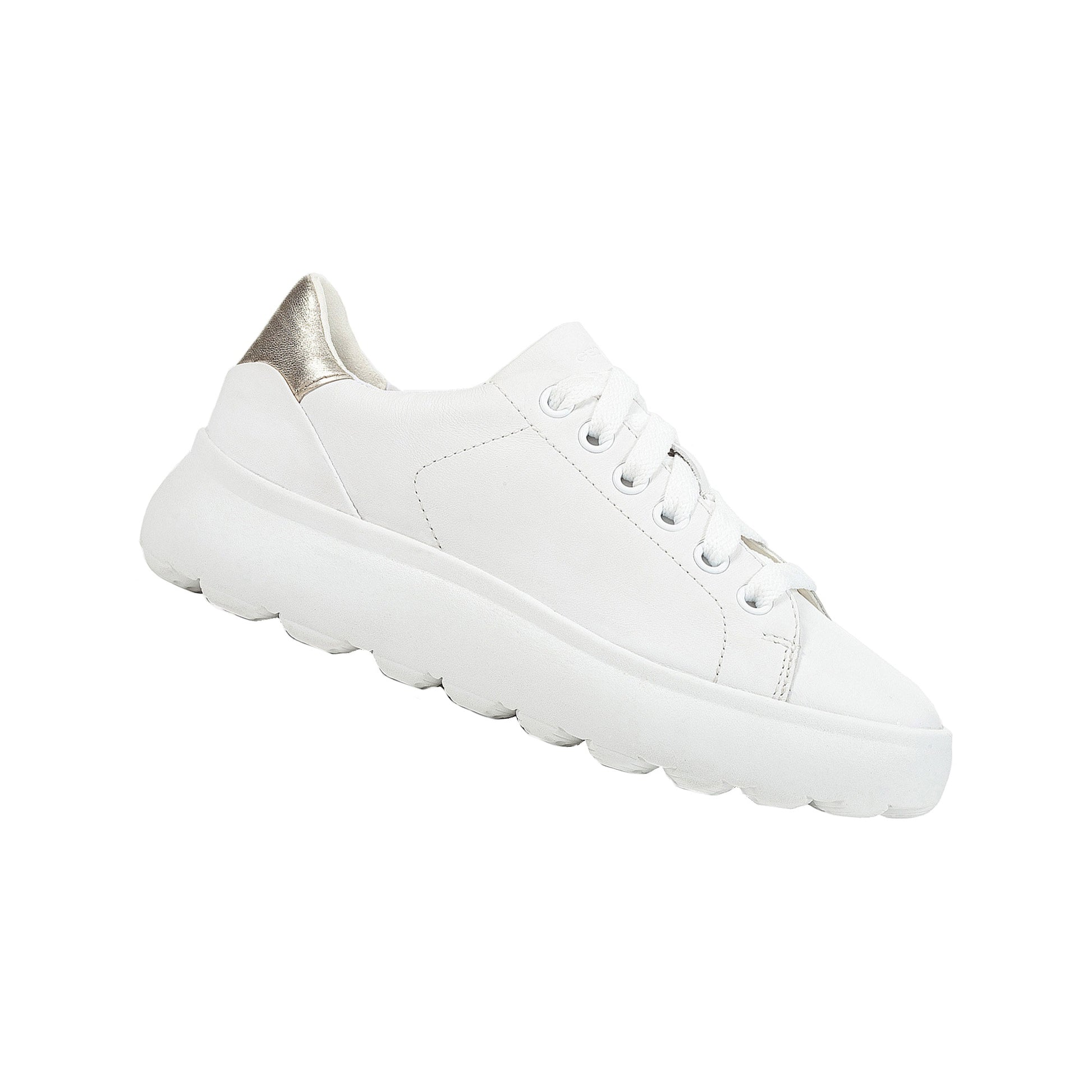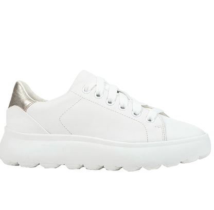 Women's ultra-comfortable low-cut sneaker created for stylishly active urbanites. Crafted from supple white nappa with gold colour detailing in metallic leather, it exudes plenty of feminine contemporary appeal and street-savvy stylishness. Spherica™ EC4.1 has been set on a chunky hi-tech on-trend sole and provides an exceptional cushioning effect, soaking up knocks and bumps from the ground.
