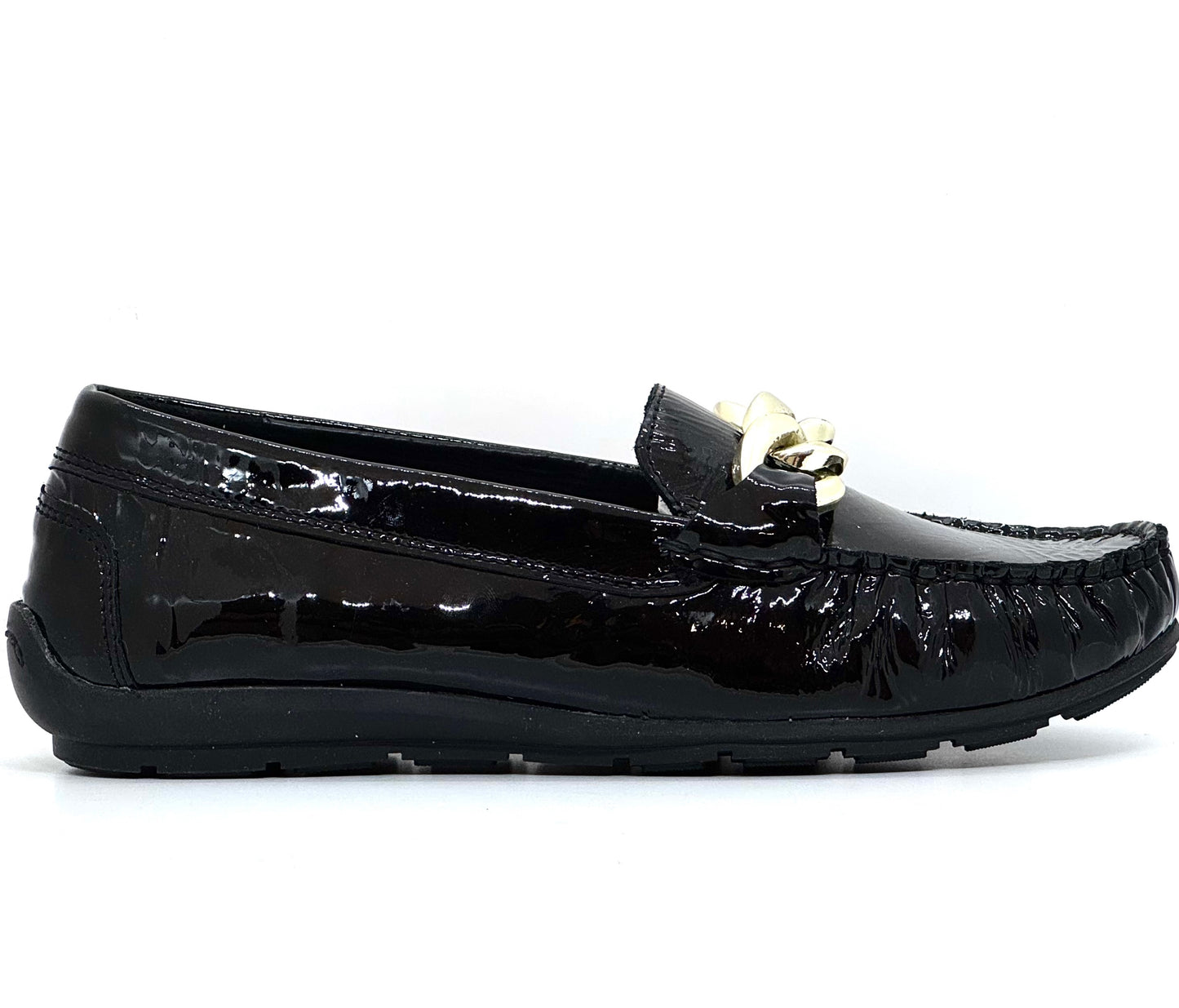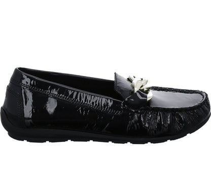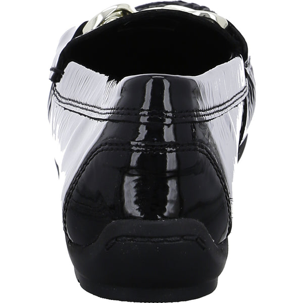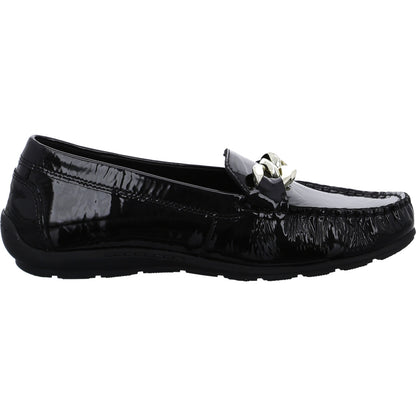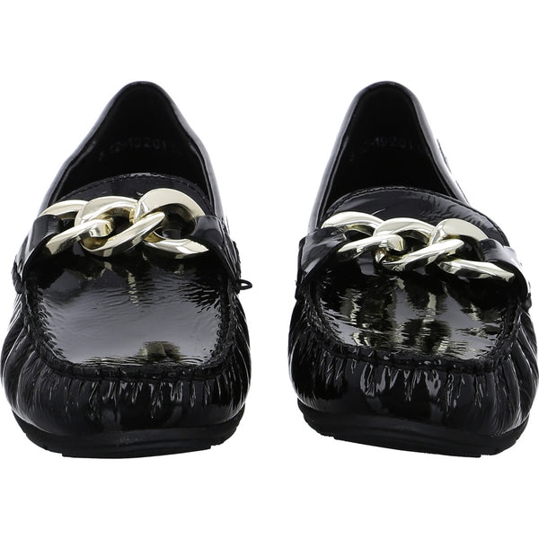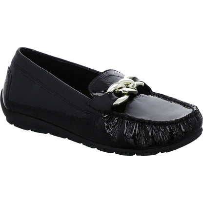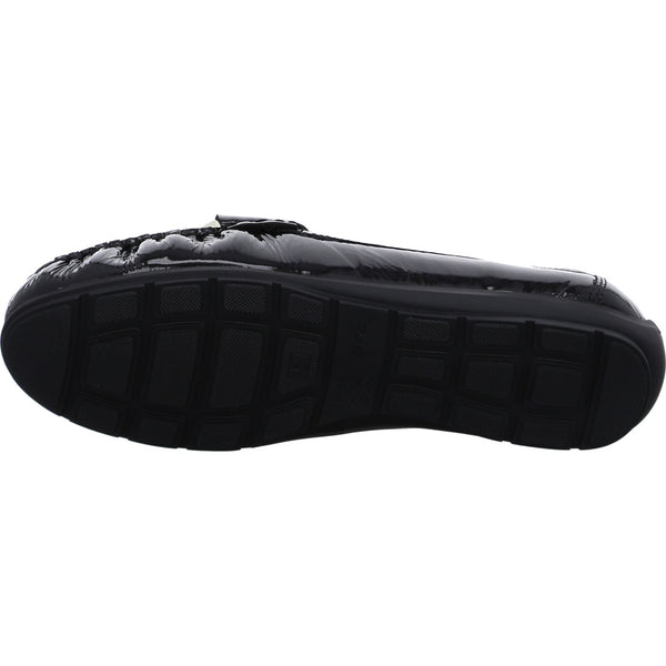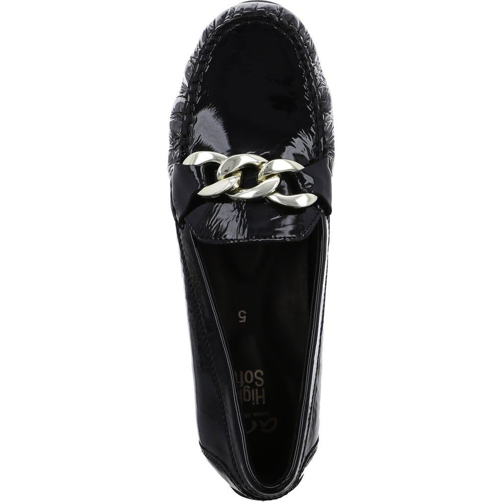 The comfortable loafers by ara made of high-quality patent leather are sporty and elegant at the same time. The shoe owes its comfort to the leather lining and the soft and replaceable footbed. Wearing your own insoles is no problem. The HighSoft technology also makes a valuable contribution to the high level of comfort of this shoe because it ensures a soft and cushioned step. The outsole guarantees a good grip thanks to the profile and, as it is very flexible, creates a smooth running experience. A real eye-catcher is the adornment above the instep which enhances the look of the shoe.