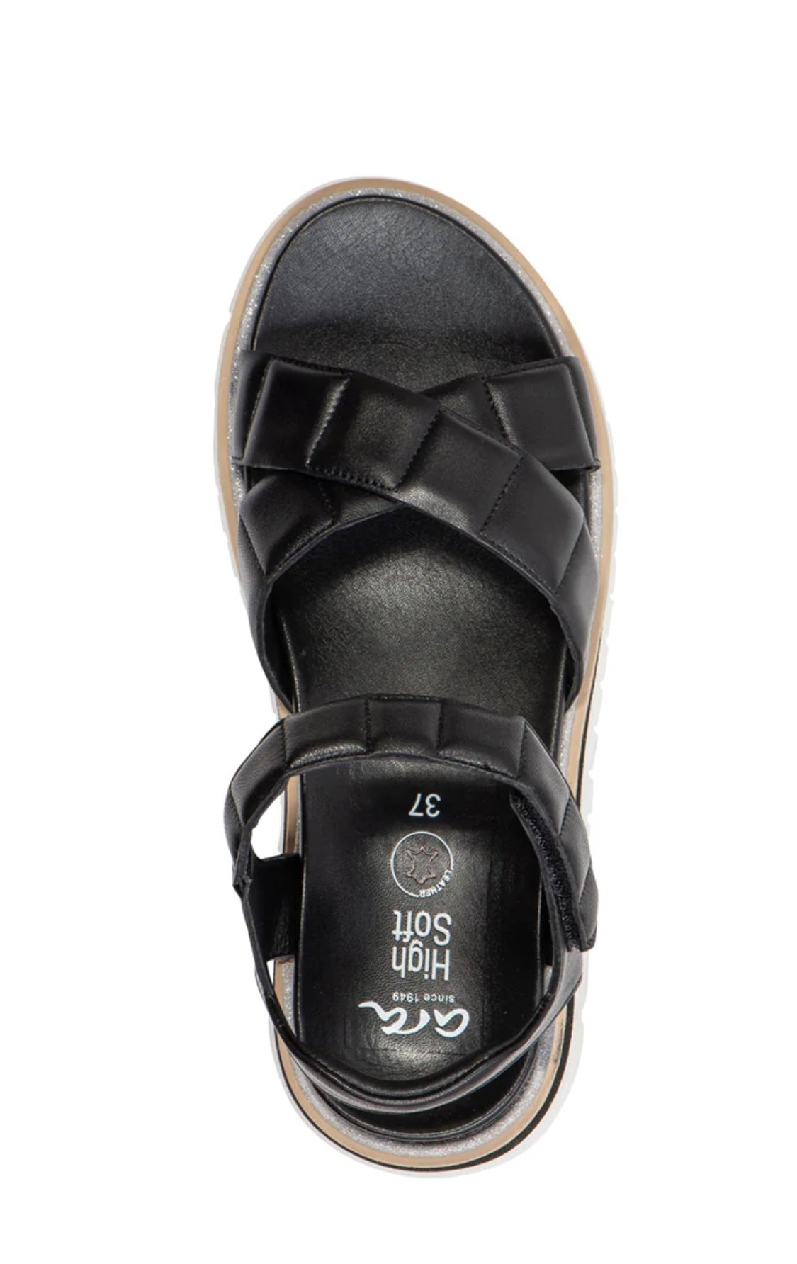 You are perfectly prepared for hot summer days with this comfortable sandal by ara. With the help of the Velcro fasteners, the sandal can be optimally adjusted to your foot. The comfortable and softly padded footbed is covered with leather and adapts wonderfully to the foot. The HighSoft technology guarantees a cushioned step and fatigue-free walking experience. The sandal owes its casual and sporty look to the sole with its distinctive profile. Combine this sandal with a pair of shorts and a top for the perfect style on sunny days.