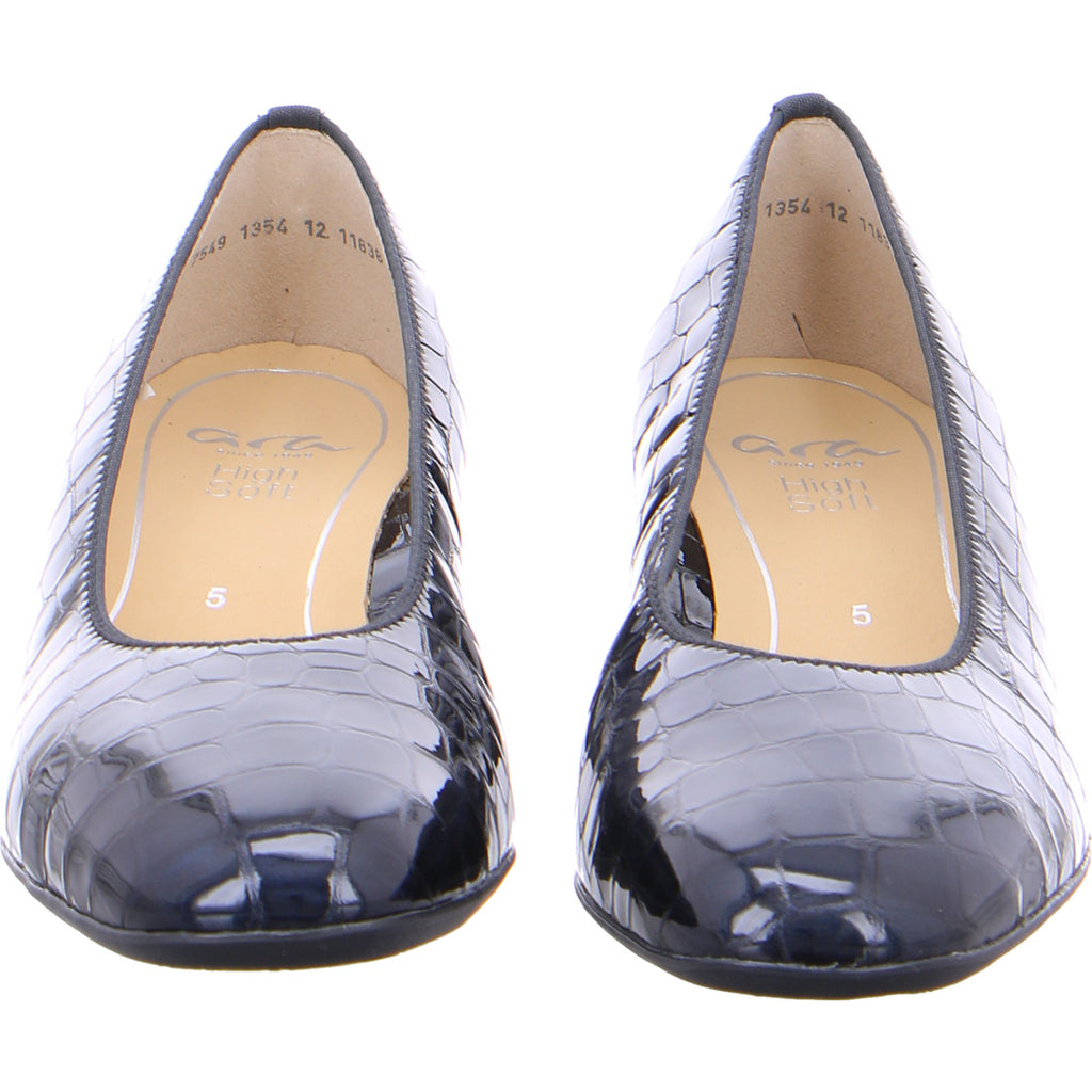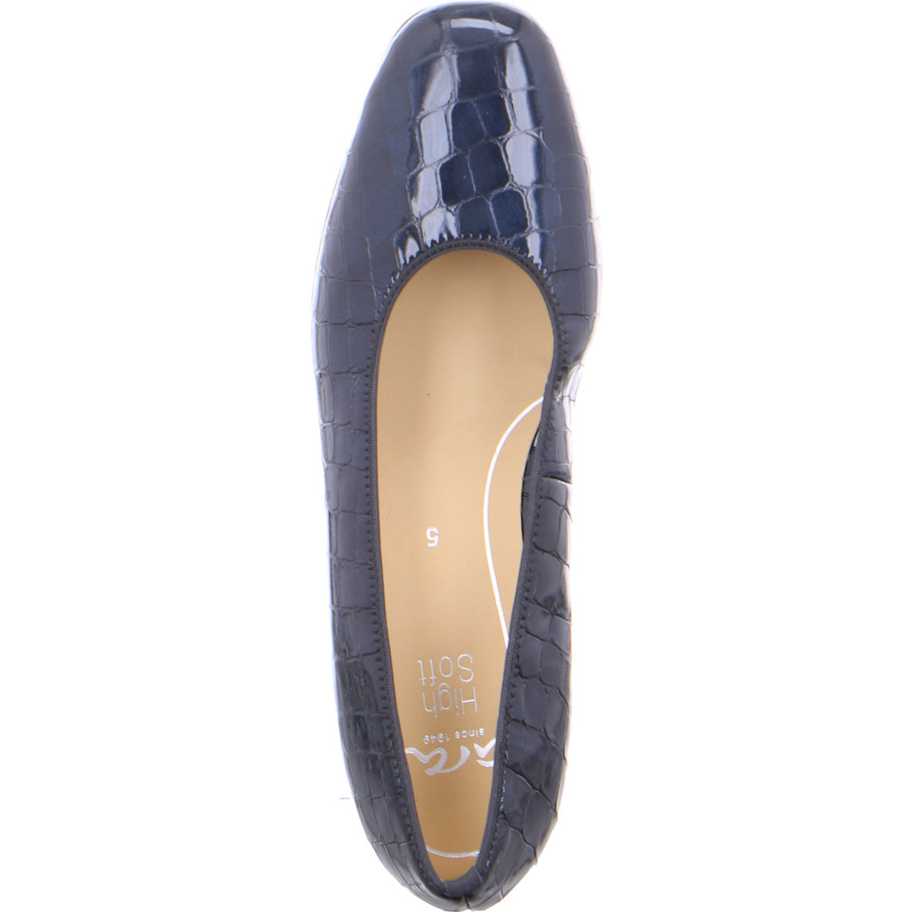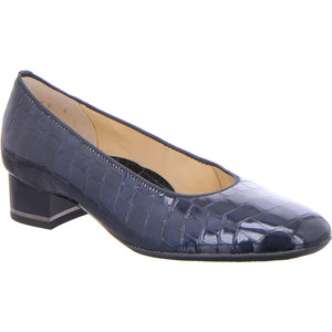 Ara Ladies Croco Court Shoe Navy