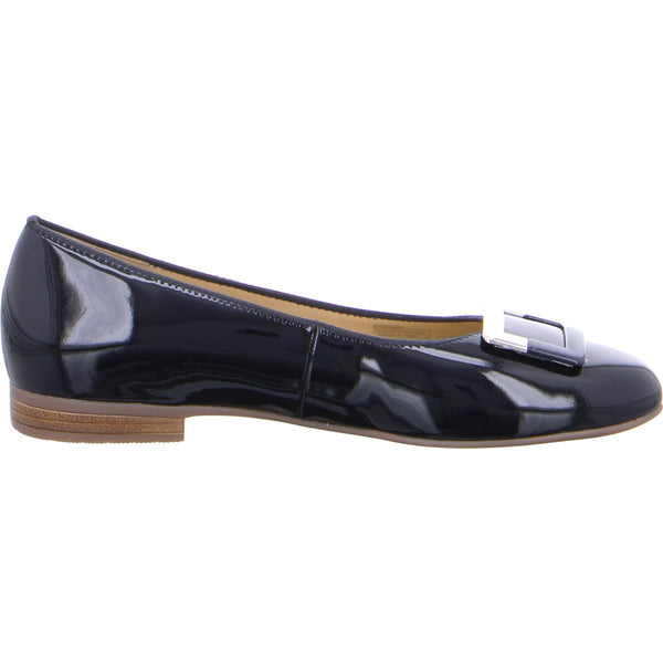 Perfect for festive occasions: the ballerina shoes from ara! The ladies' shoe is visually appealing and comfortable thanks to the upper material made of patent leather. At the same time, the highly flexible outsole and the softly padded insole provides a great feeling with every step. The pretty decorative brooch provides a special extra touch. It makes this shoe shine as a real highlight. Whether you're attending a business dinner or a celebratory family get-together, you can't go wrong with these blue ballerina shoes from ara.