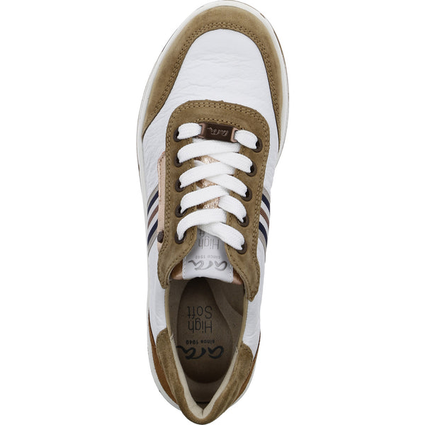 This sporty sneaker from ara is a real feast for the eyes thanks to the trendy mix of materials and colours. The interior made of soft textile gently encloses the foot and ensures a pleasant feeling. Using your own insoles is no problem with this shoe, as it has a changeable footbed. The sneaker is particularly comfortable thanks to the integrated HighSoft technology, which guarantees a soft step and relaxed walking. The wide laces are not only an eye-catcher, they also serve to adjust the shoe to your own needs. The slip-resistant sole ensures a secure step. This very lightweight shoe can be worn all day and proves to be the perfect companion on long walks or a trip with the family.