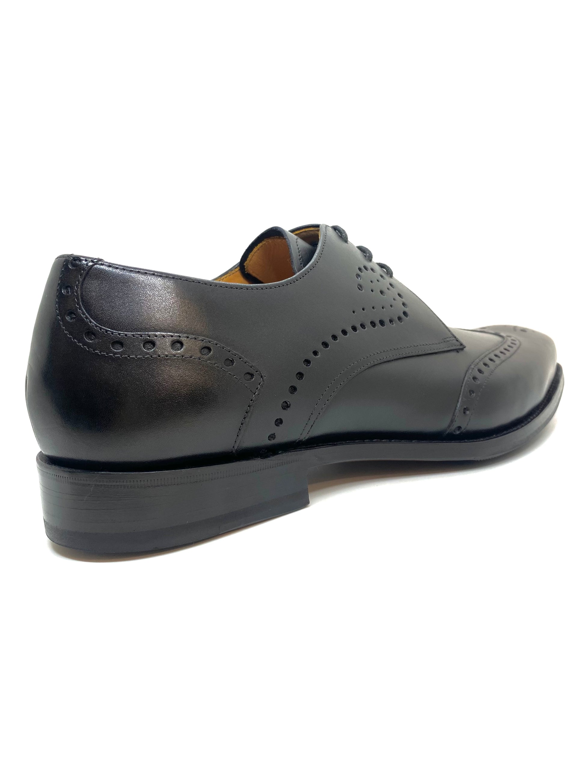 Introducing the George Wing Tip Brogue Derby, a distinguished masterpiece that encapsulates timeless elegance. This shoe pays homage to traditional craftsmanship with its intricate wing tip detailing and meticulously punched brogue patterns, techniques that originated in Scotland and Ireland as functional elements for draining water from shoes. George boasts a hand-brushed finish that emulates the exquisite grain of wood on its leather surface. Its upper leather undergoes a meticulous process, including a light base coat and a brush-applied darker stain, resulting in an antique wooden effect. The uppers are then wax polished to achieve a rich, deep patina. The shoe's classic design ensures that its form and structure endure even with prolonged wear. Its premium Italian leather sole, coupled with a rubber forepart, seamlessly merges durability with the elegant lines of a full leather sole.