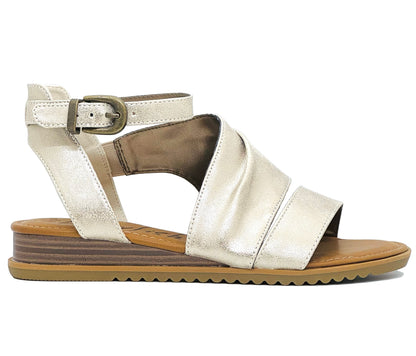 The Blowfish Malibu Women's Balana Cloud Metallic Sandals offer a sleek and contemporary design, perfect for warm-weather wear. Crafted from fully synthetic, vegan-friendly materials, these sandals feature a metallic finish that adds a subtle shimmer to any outfit. The 30mm heel provides a slight lift, while the cushioned insole ensures comfort throughout the day.