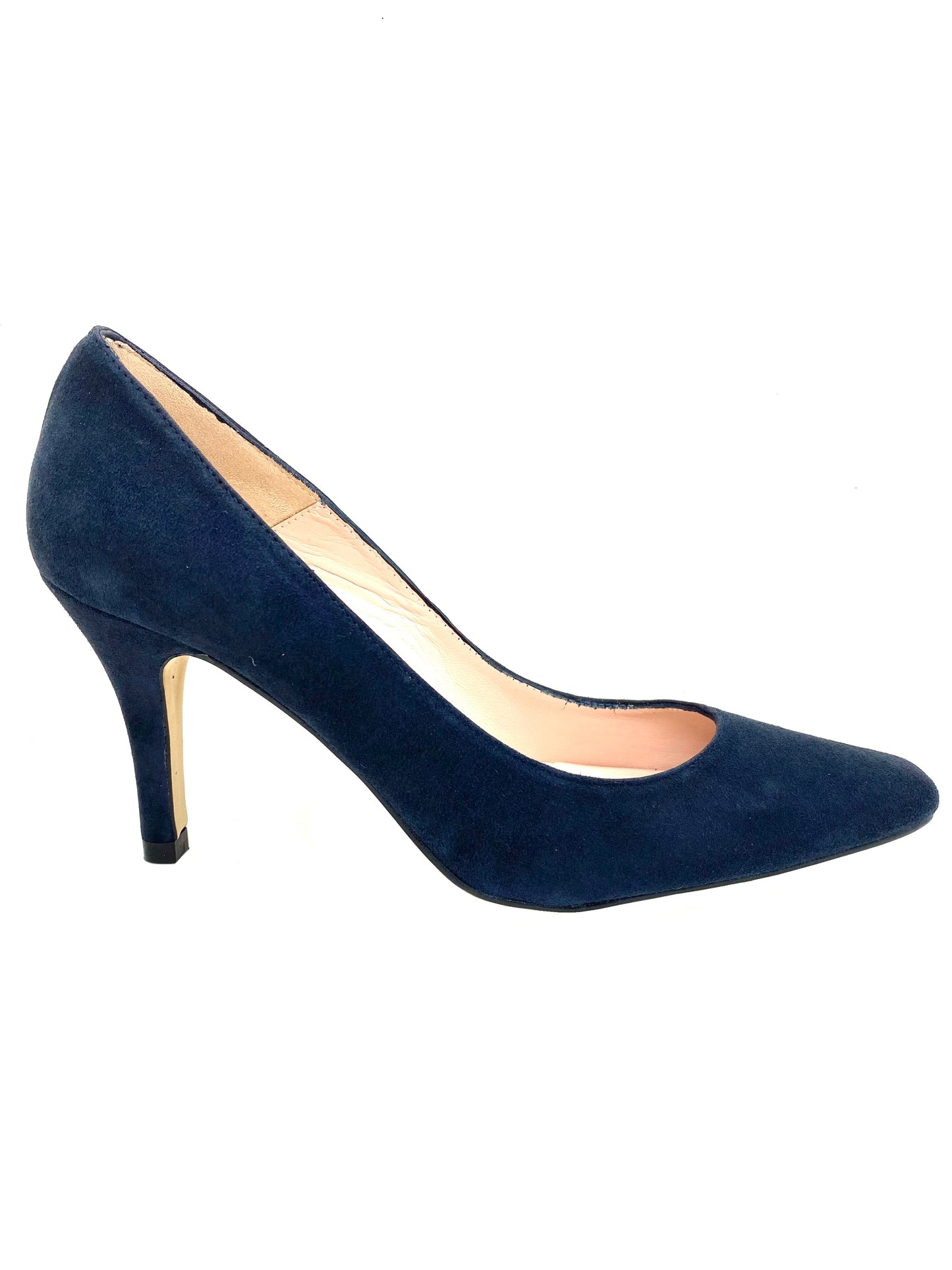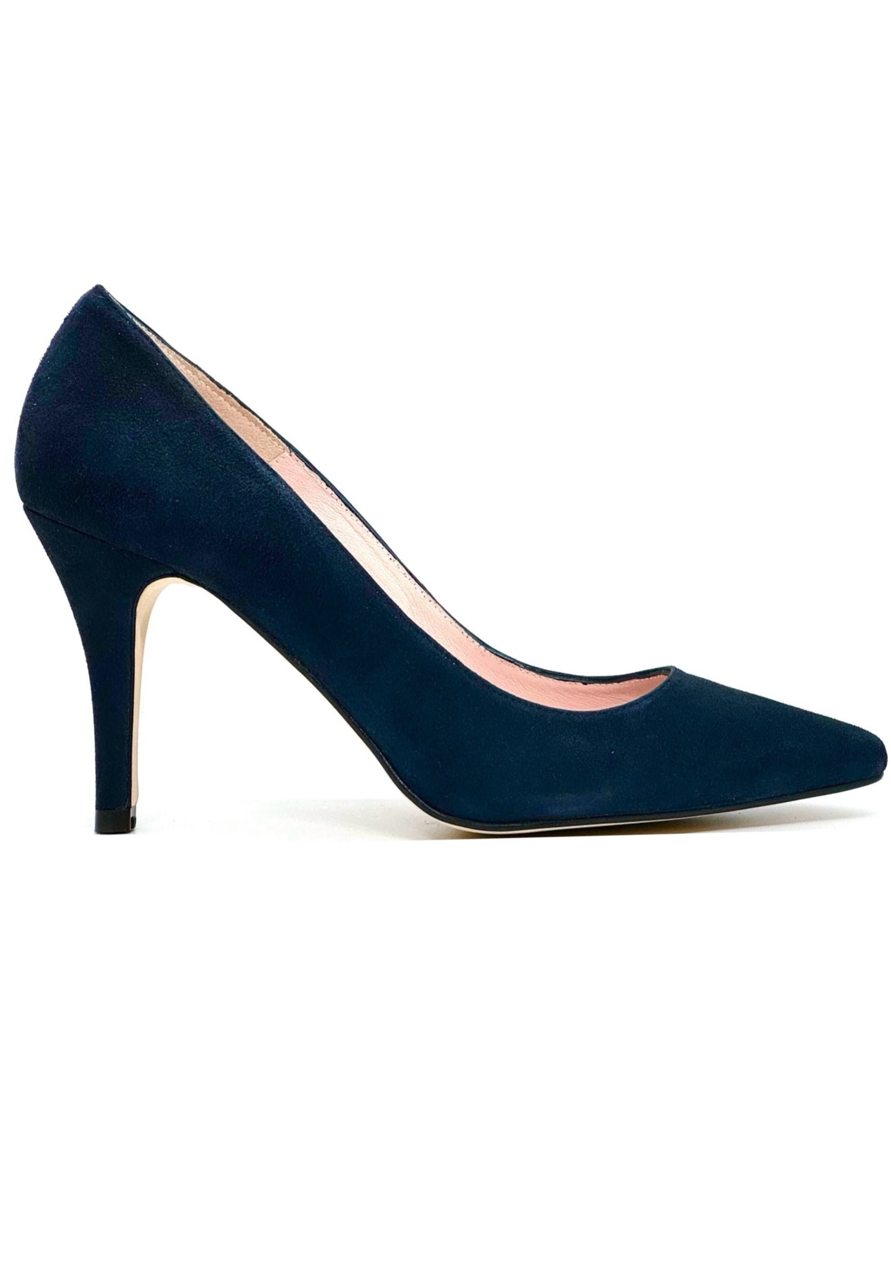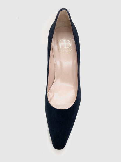 From HB Shoes Espana range this classic court shoe in soft suede upper and leather lining on a slim 85 mm suede covered heel.