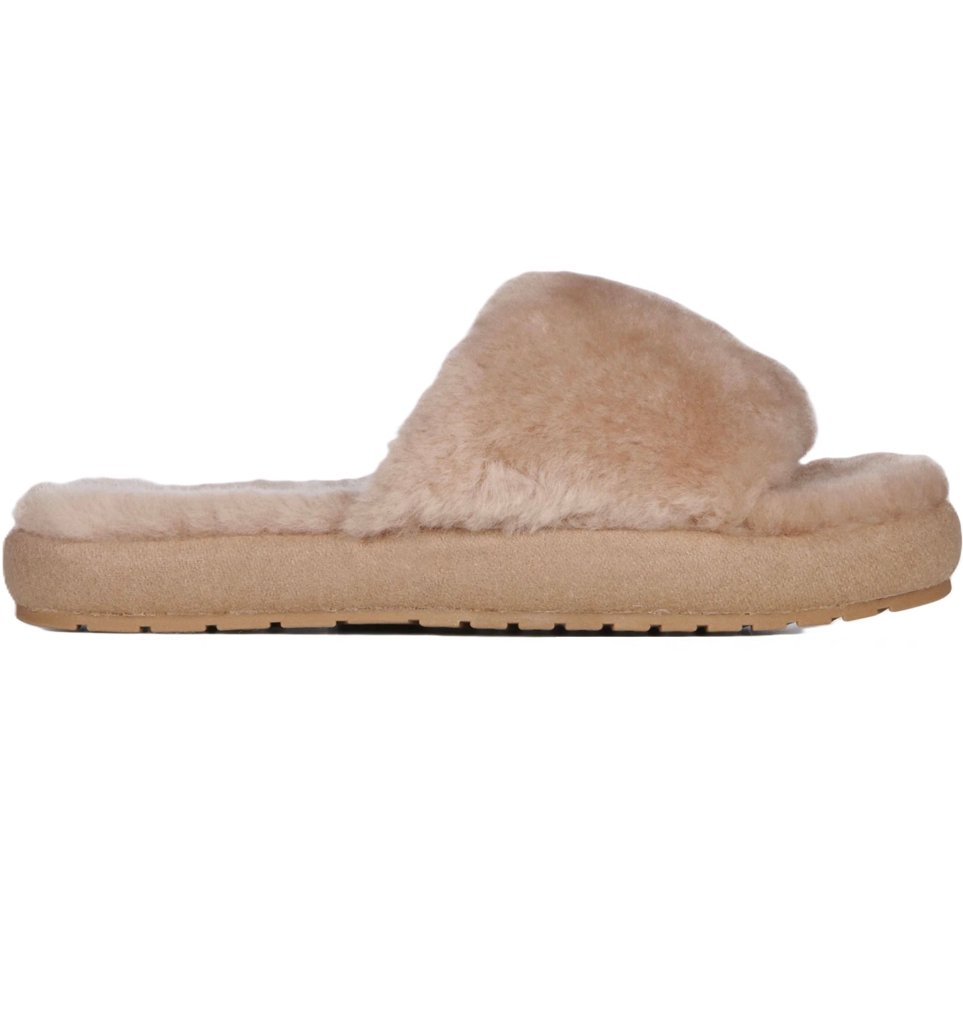 Designed with a classic slide silhouette, the McKay Slippers offer easy wearing and effortless style. Simply slide your feet into these heavenly slippers and experience the ultimate comfort of walking on clouds. The natural sheepskin not only keeps your feet warm and toasty but also provides cushioning and support with every step.