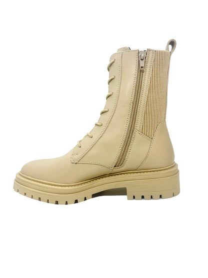 Women’s comfortable breathable lace-up ankle boot with a contemporary city vibe. This minimalist piece exudes iconic timeless appeal and has been made from plain leather with a special elasticated side panel. With an attractive aesthetic and a mettlesome lug sole, Iridea is an original-looking combat boot that will prove to be extremely versatile.