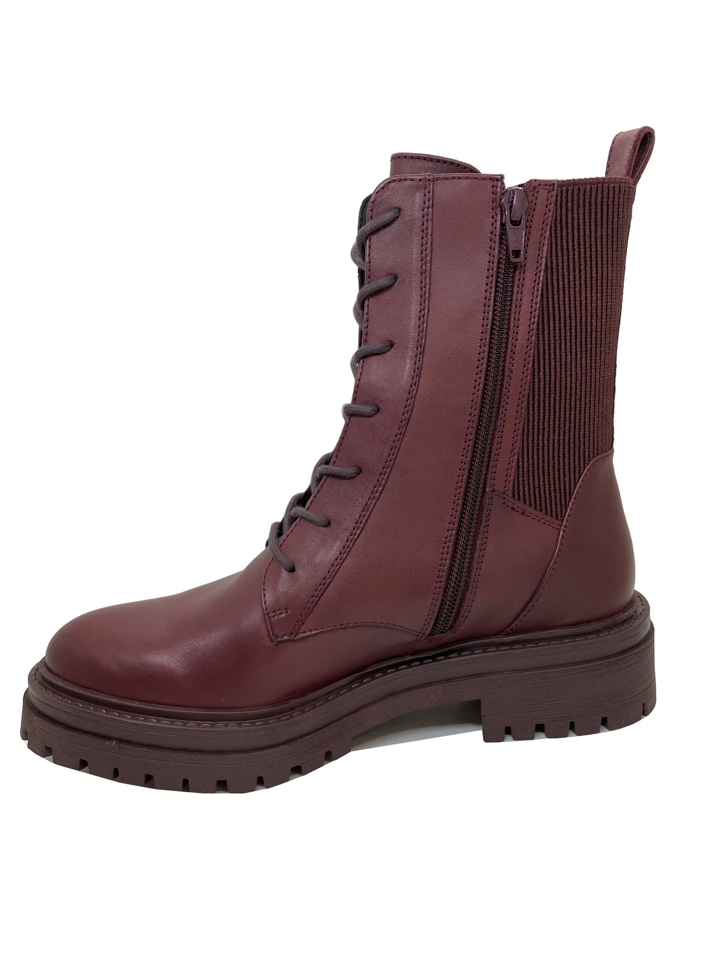- The lacing and zip closure make for an easy foot entry and an adjustable fit.