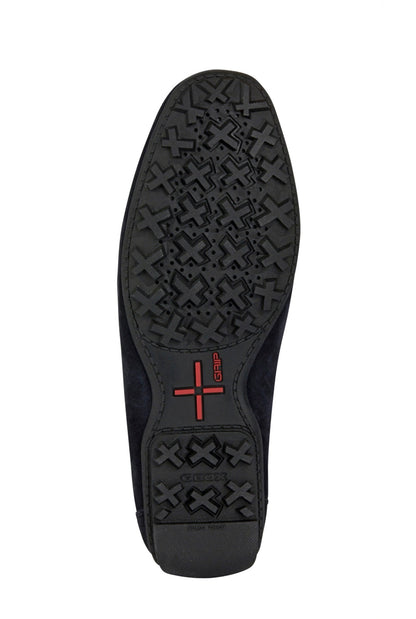 Men’s lightweight breathable loafer loaded with iconic overtones and an urban vibe. Cast in an elegant navy-blue palette, this version features an upper made from soft suede that oozes refined laid-back stylishness. Set atop a gripping outsole that provides traction on dry and wet ground, Kosmopolis + Grip is a staple addition to any repertoire and a perfect travel companion.