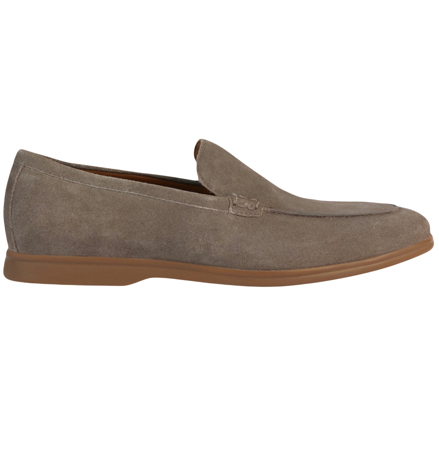 Slip-on loafer for men loaded with impeccable city suaveness and boasting a minimalist design that emanates contemporary refinement. Meant for casual-chic styling, Venzone has been made from soft suede in a taupe palette. A perfect choice for the office or leisure time strolls, this version rests on a breathable flexible outsole in a honey shade.