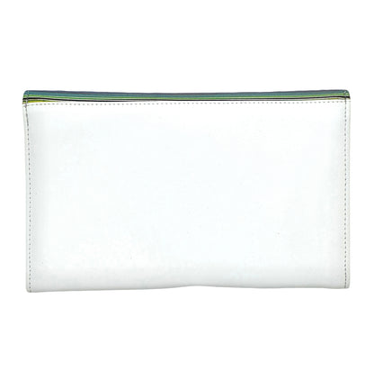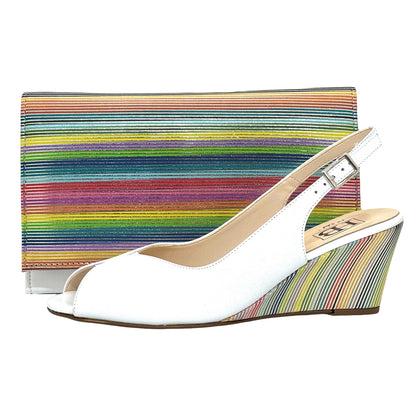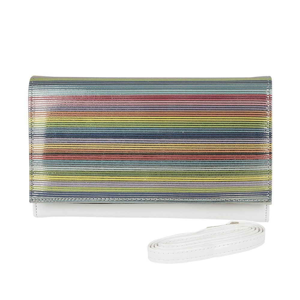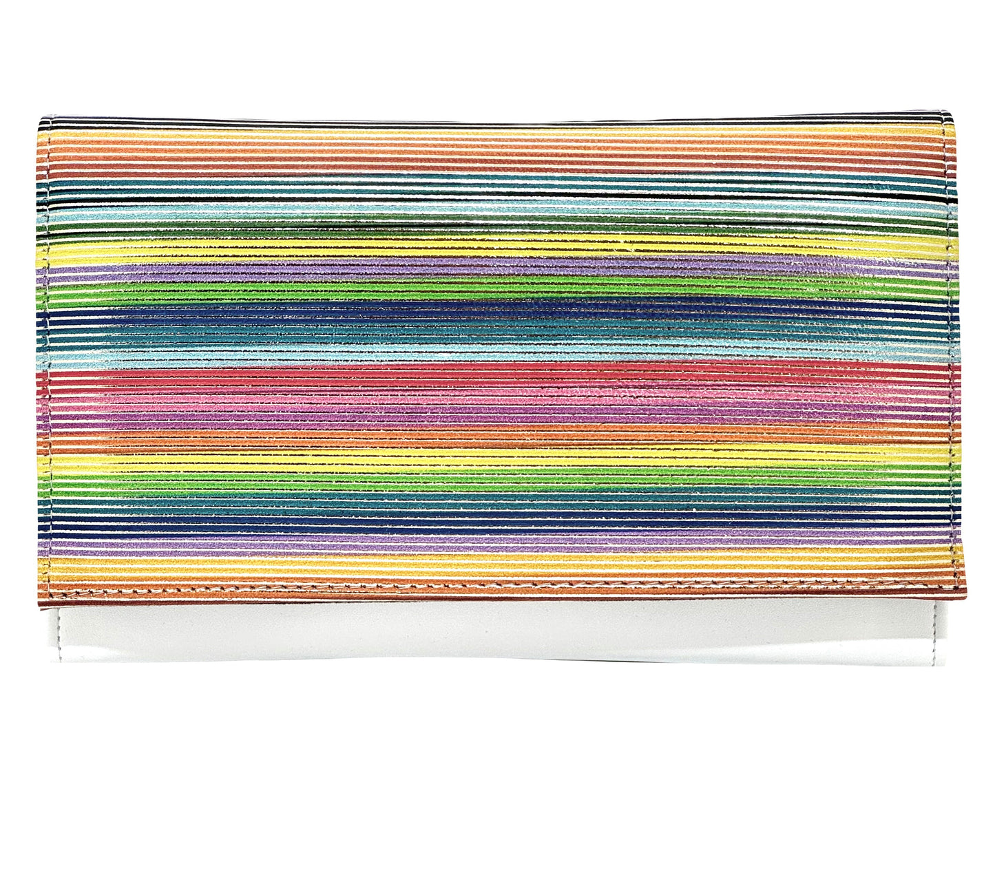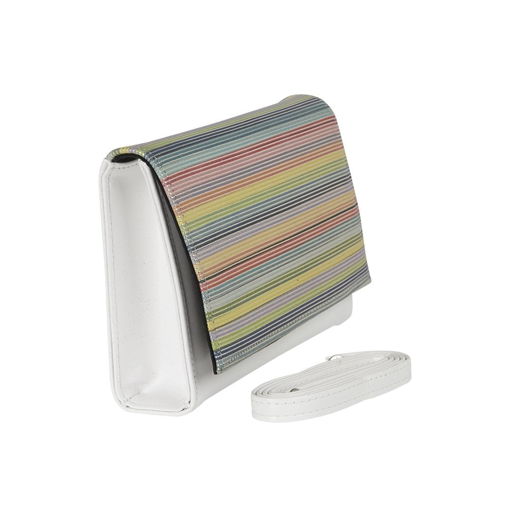 Classic HB Jasmine block shaped clutch bag closed with a block shaped multi coloured striped flap. This comes with a strap made from the same material as the bag. Jasmine is a trendy shaped bag adding fashion and style to your outfits for both casual and formal occasions.