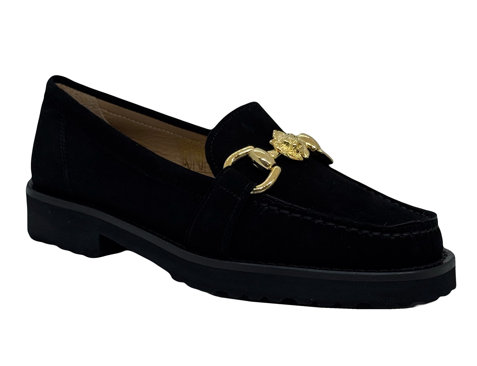 These classic hand-stitched moccasins from HB Made in Italy range have been given a modern makeover with an extra lightweight chunky sole. The gold snaffle features a lion's head in the centre. A timeless edition to any wardrobe.