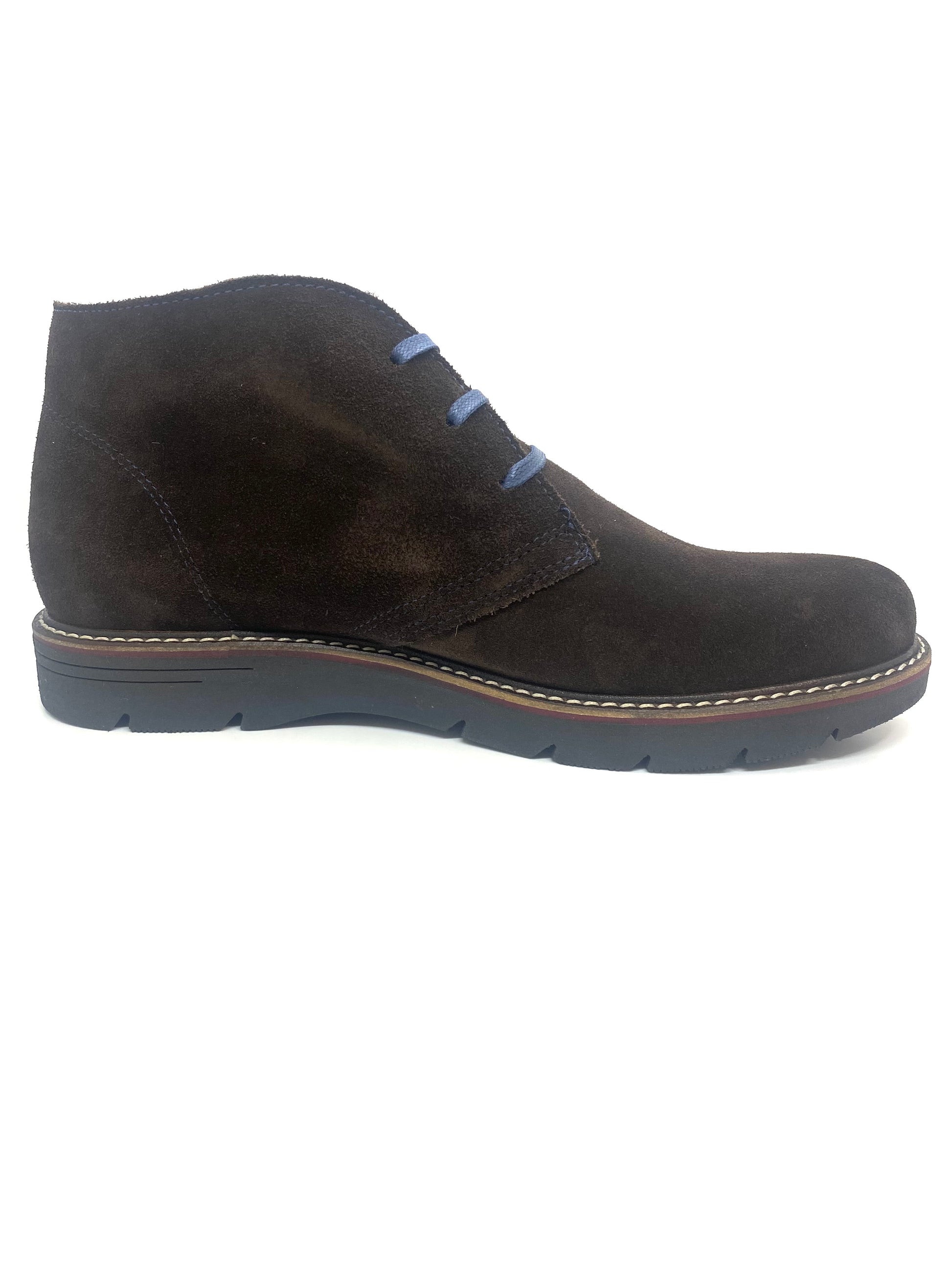 Men's suede lace-up ankle boots. These eye-catching boots in soft suede have contrasting stitching, laces and soles. A soft textile lining and cushioned removable insoles ensure all day comfort. Shock absorbers in the sole. A stylish and comfortable addition to your wardrobe.