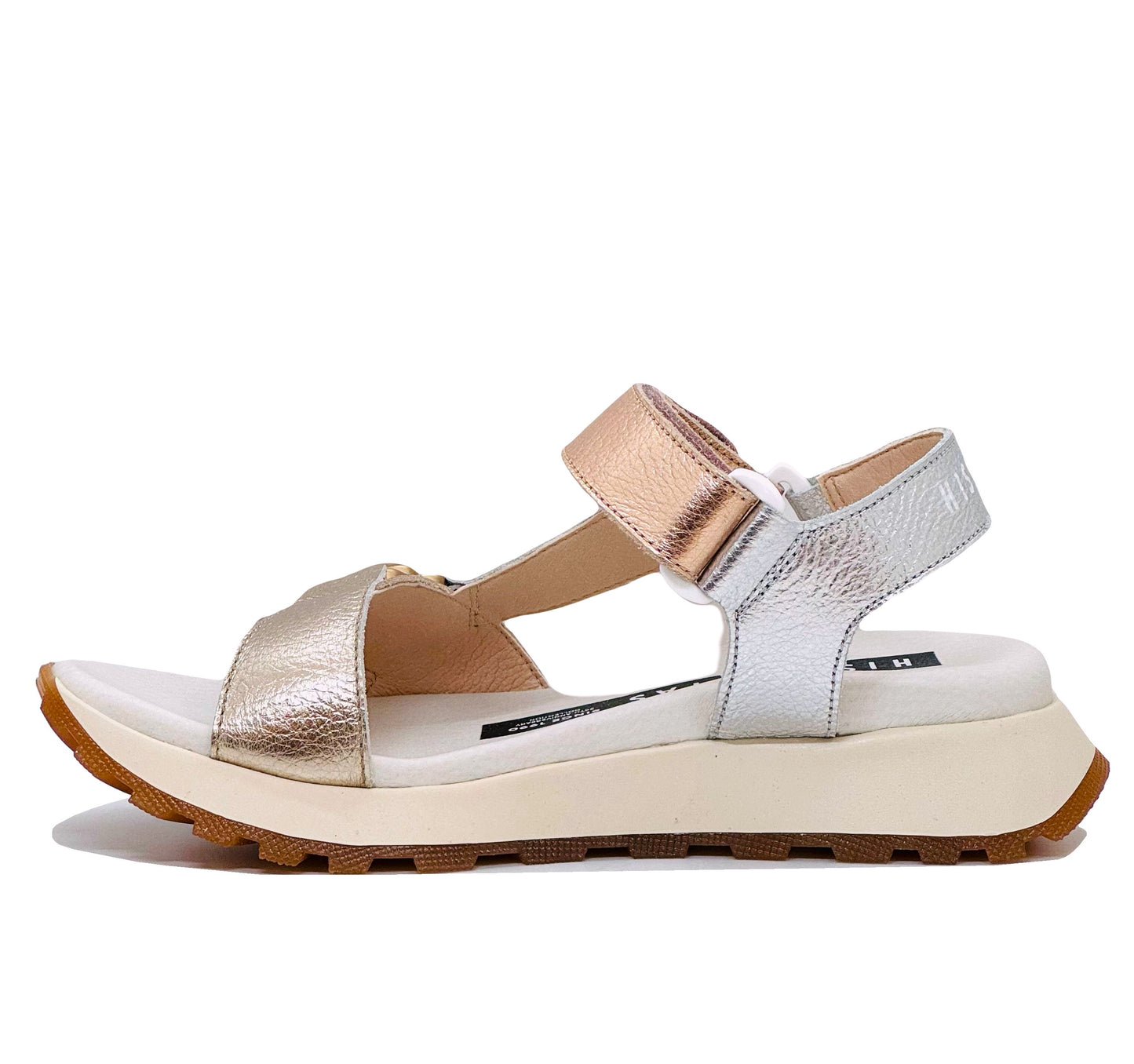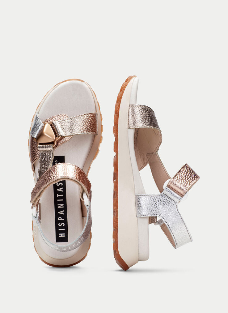 The Sport Sandals Maui in Metallic Silver offer a perfect blend of urban style and comfort. With a modern, sleek design, these sandals feature leather strips for a sophisticated look and a rounded tip for a clean, flattering shape. The 4.5 cm floor provides excellent non-slip grip and stability, ensuring a secure stride. Thanks to the Triflow technology, the sandals feature triple padding in the tread area to absorb impacts and provide added cushioning with every step. Ideal for a variety of occasions, these sandals combine practicality with fashion-forward design.