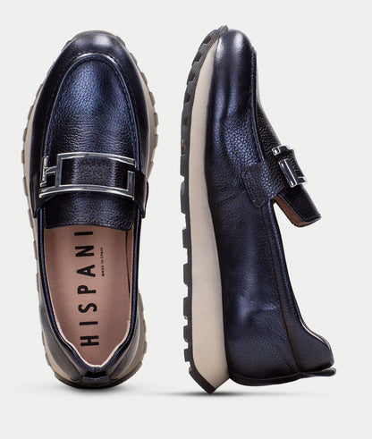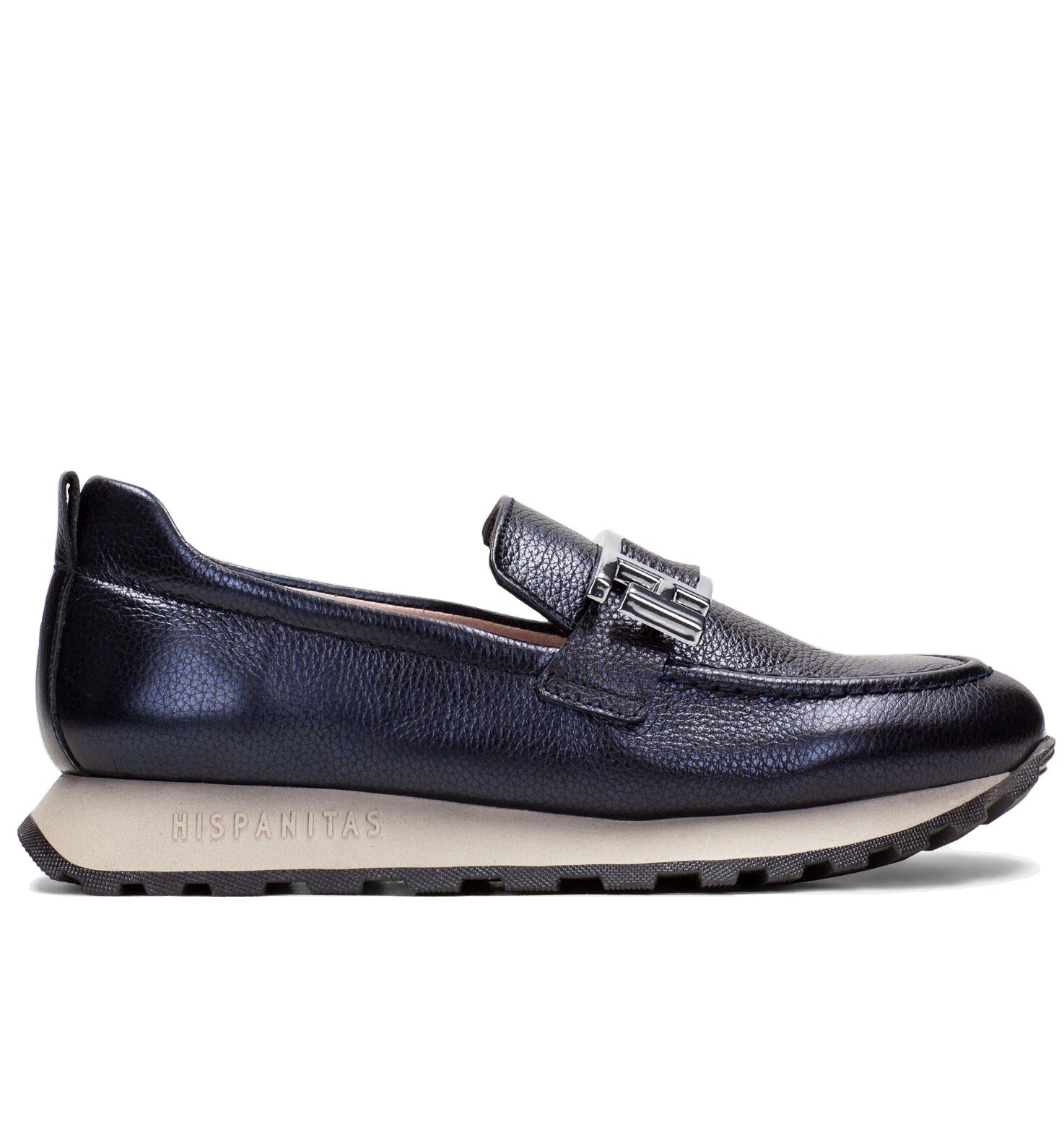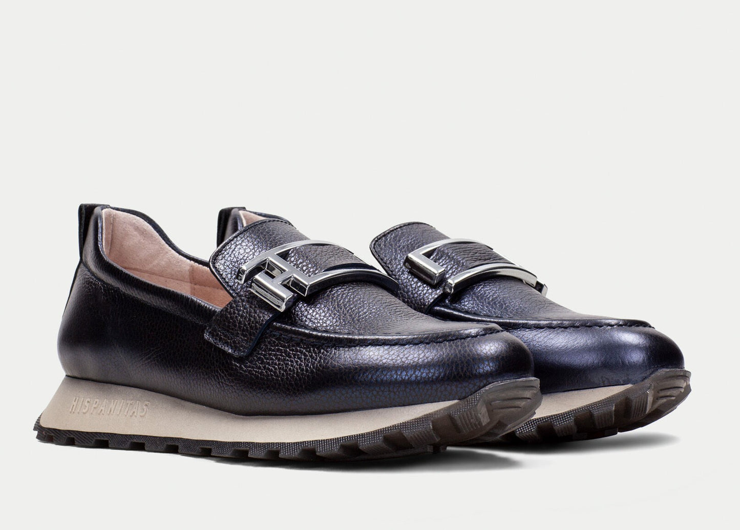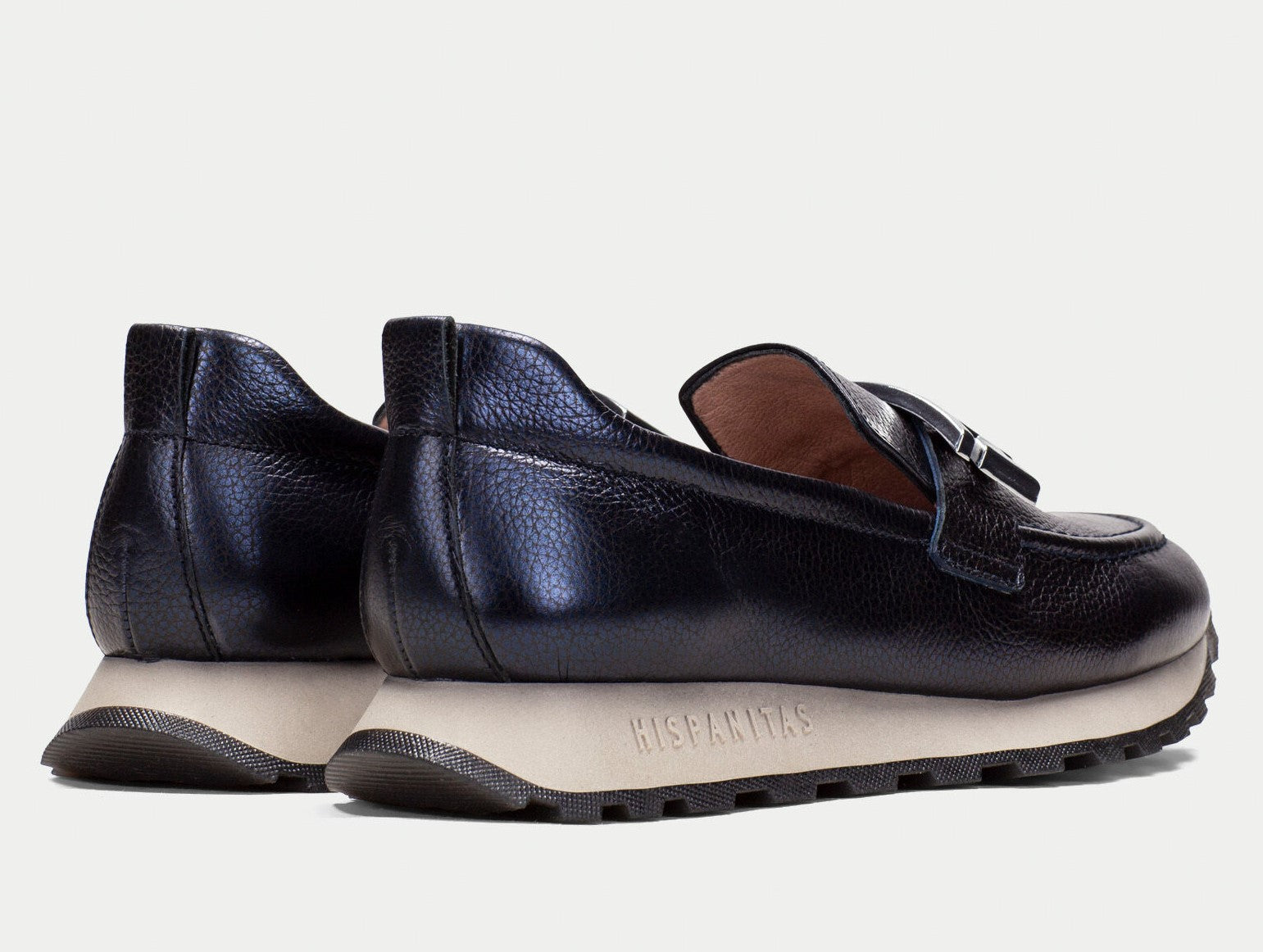 Sport moccasin with volume sole and maxi buckle ornament with the Hispanitas logo on the instep. This model incorporates the Triflow technology. It also features a removable insole.