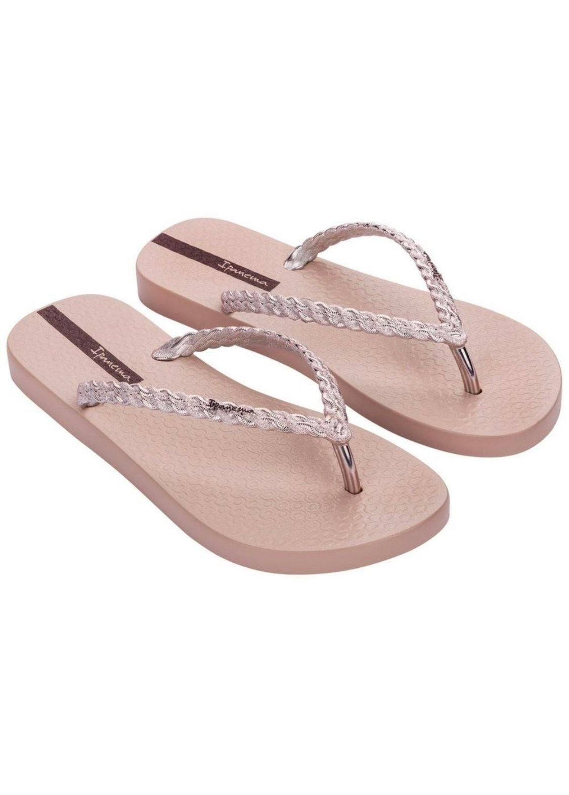 Exuberance Chrome is a stunning thong flip flop with amazing plait detail straps with a chrome finish. Adorned with a discreet Ipanema logo on the strap. Seen here in Rose Gold.