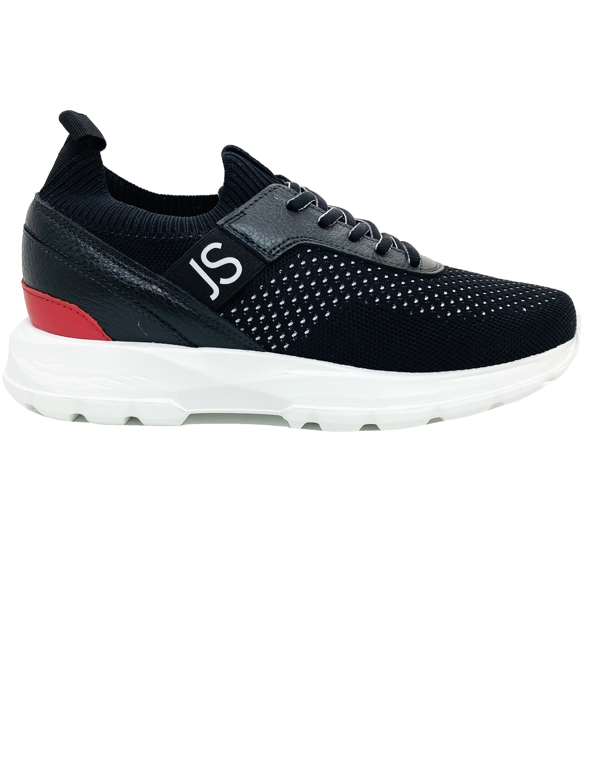 Slip-on trainer with the look of a lace-up. Breathable fabric upper with a reinforced leather heel for support. A flash of red on the heel ads to their appeal. The removable insole allows you to swap in your own for a bespoke fit.