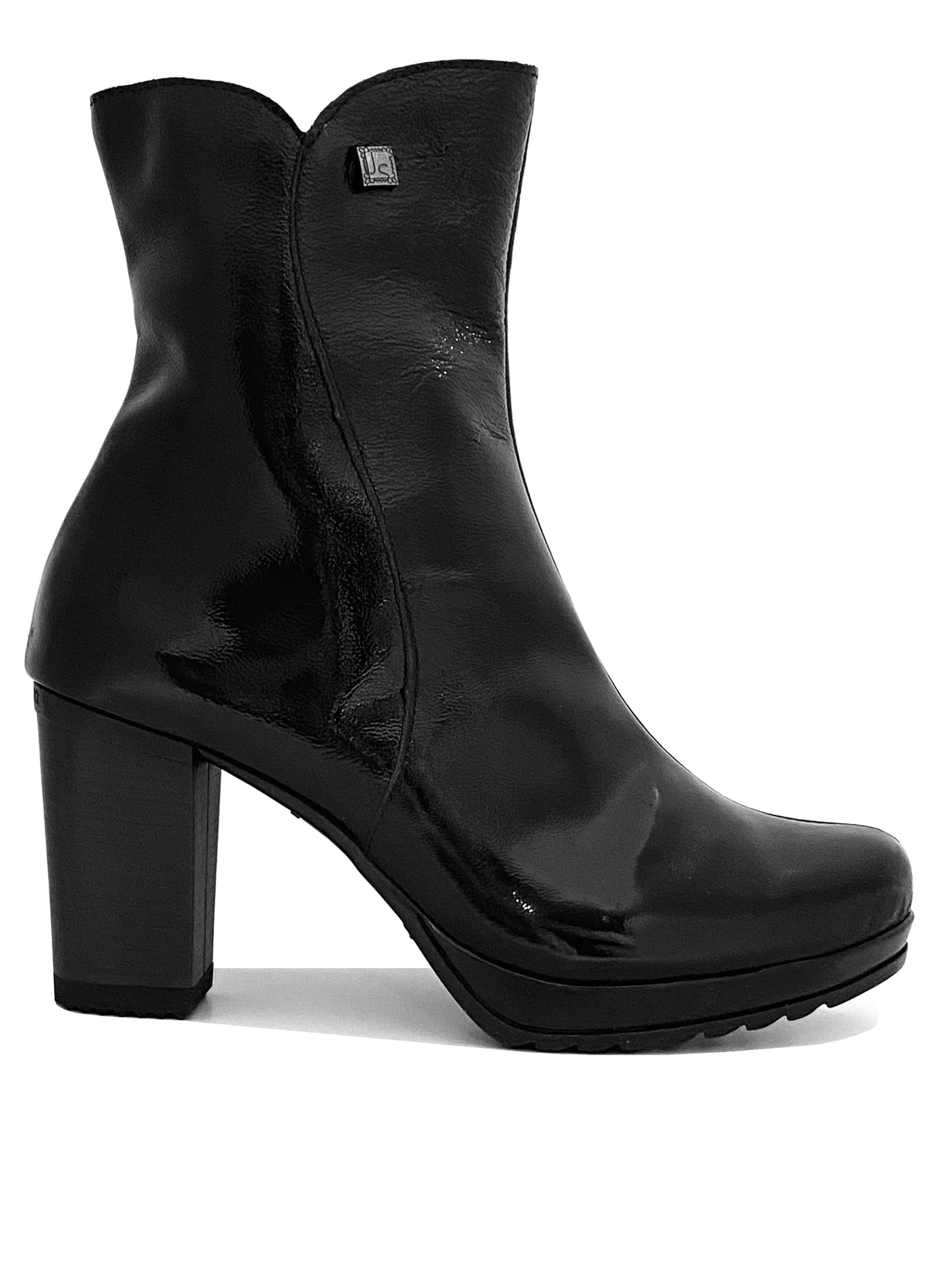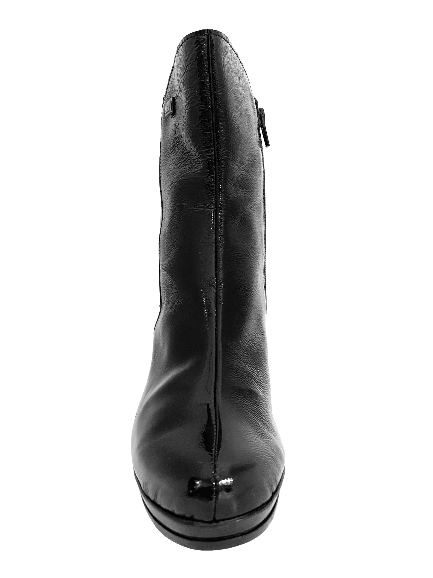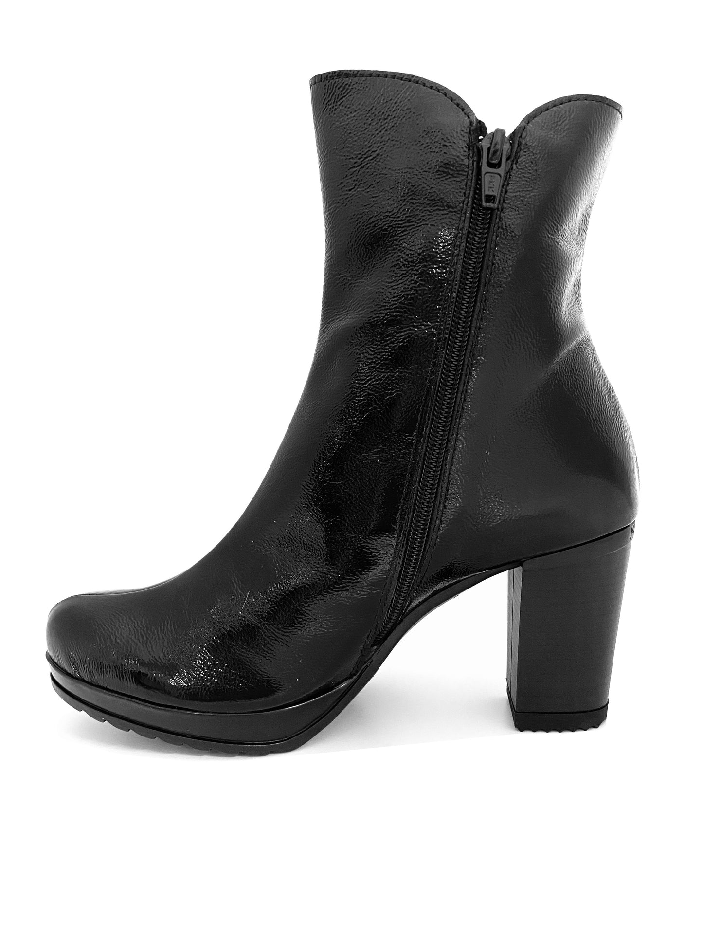 High heeled ankle boot on a slim block heel for stability and a small platform sole. These elegant leather boots come quite high up the ankle and have a curved topline that dips down at either side. Removable insoles can be swapped out for your own for the perfect fit. Zip entry to the instep allows for easy foot entry.