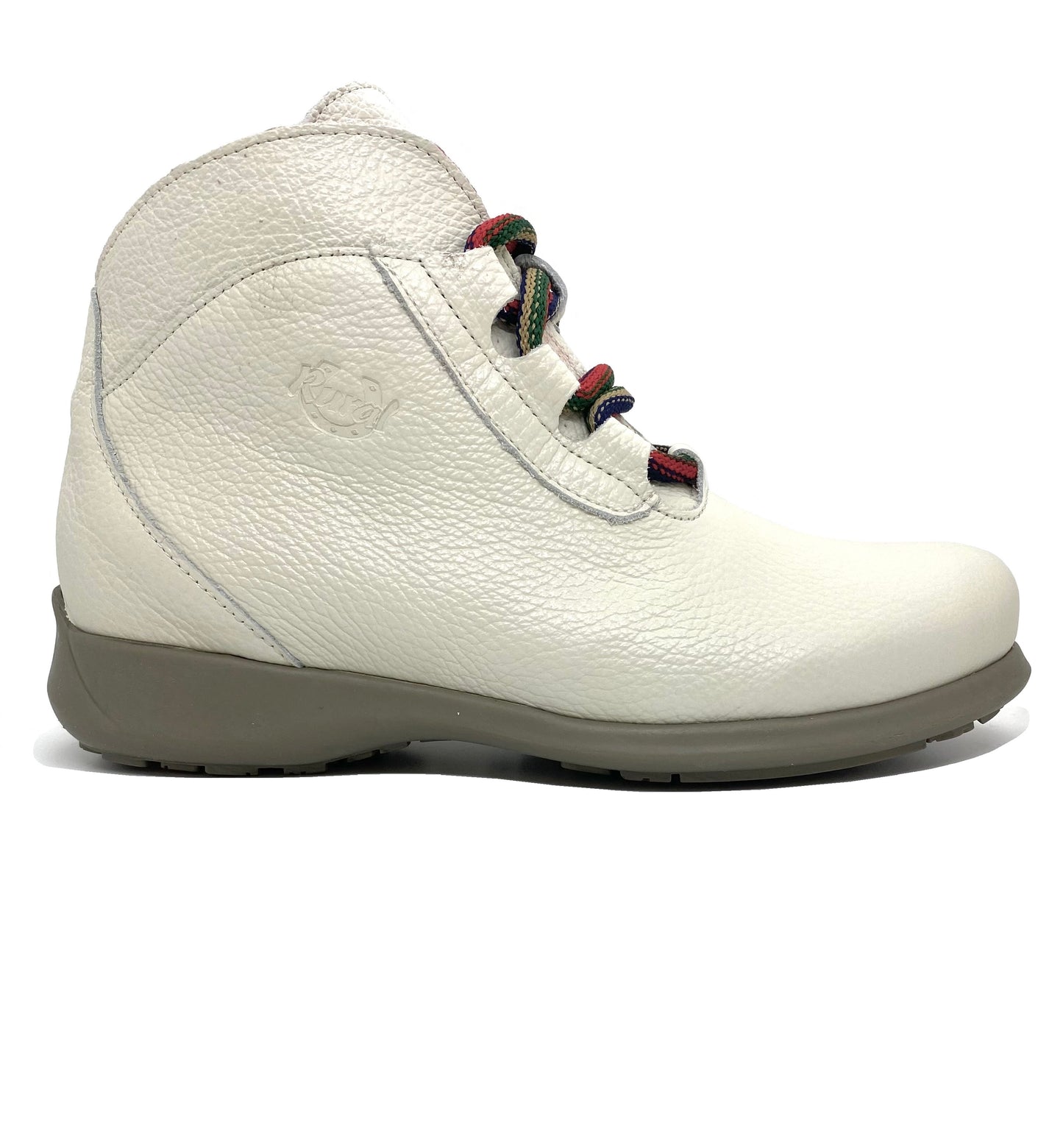 Relaxed style lace-up ankle boots in grained leather with multicoloured laces. These casual boots have cushioned removable insoles and a warm velveteen lining. Part of the Rural collection by Jose Saenz. Available in four eye-catching colours.