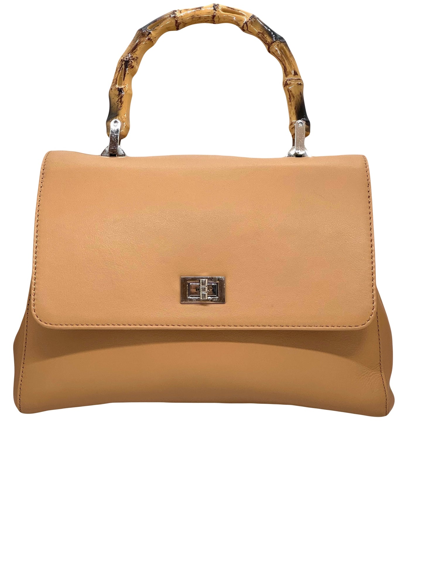 Kiki is a stunning luxury grab bag which will make you stand out from the crowd. With its butter soft leather and a eye catching bamboo look handle its a highly attractive and comfortable bag to hold. It’s secured by a leather lined flap with a twist lock fastening for added security and beauty. It has a pocket on both the front and back of the bag with three internal pockets. If you want to carry the bag differently there’s a detachable strap which allows the bamboo handle to be seen even when Kiki is being carried as a cross body bag. On the base are metal feet to keep the bag scuff free. A real luxury soft leather handbag.