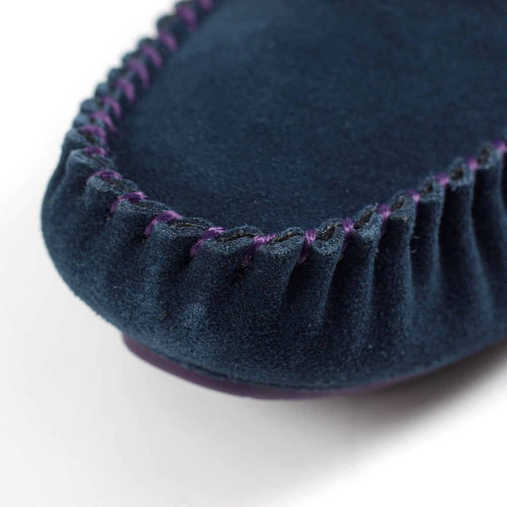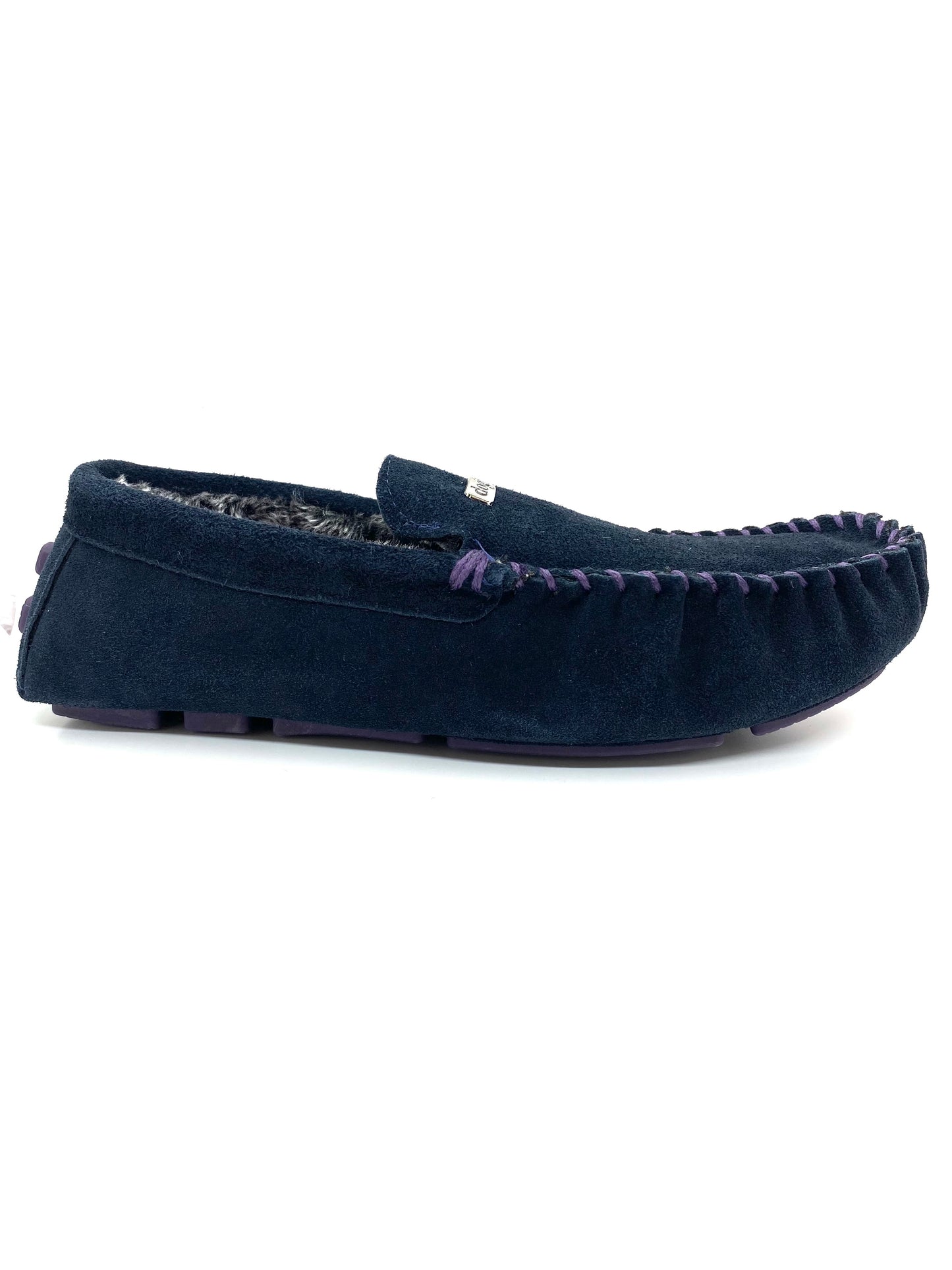 These Percy Mocassin Slippers, available in genuine Navy suede, will make a fine addition to your wardrobe.