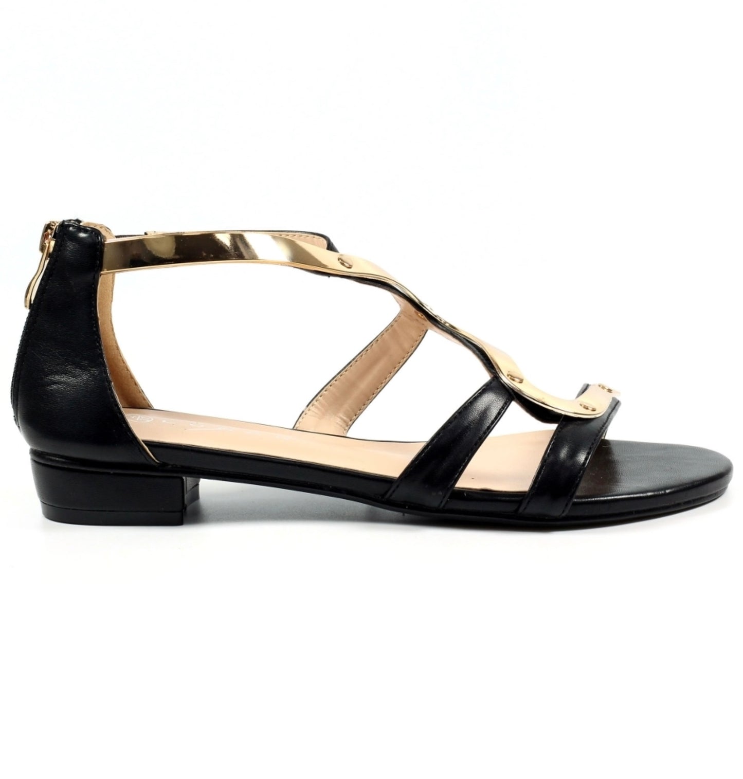 - Decoration: gold swirl upper strap