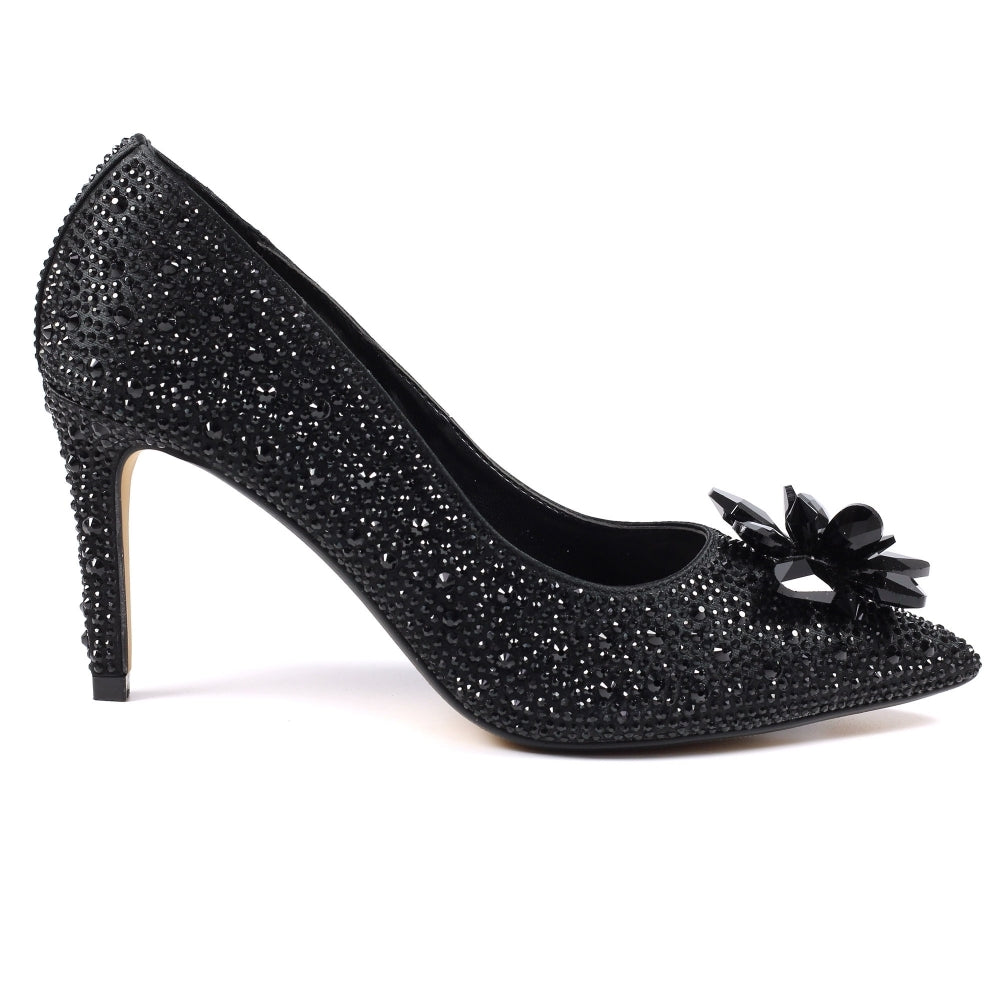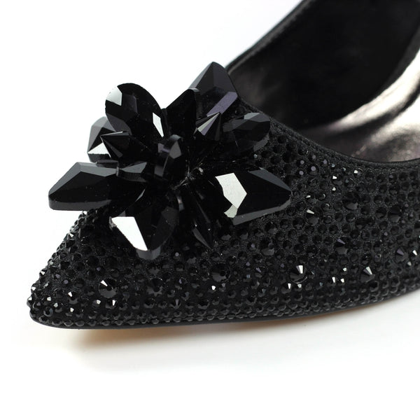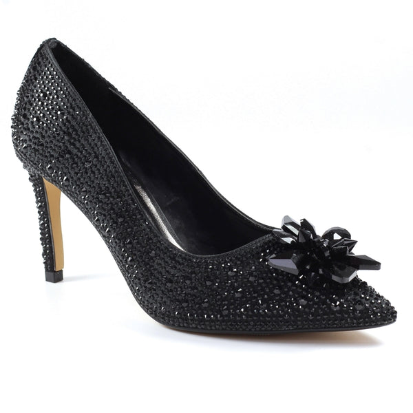 The Regal shoe really does live up to it's name! This shoe is guaranteed to turn heads with its diamanté encrusted upper and heel along with the shard like, gem corsage. This shoe is sure to turn any outfit from drab to fab. To finish the look, pair with the equally fabulous clutch bag.