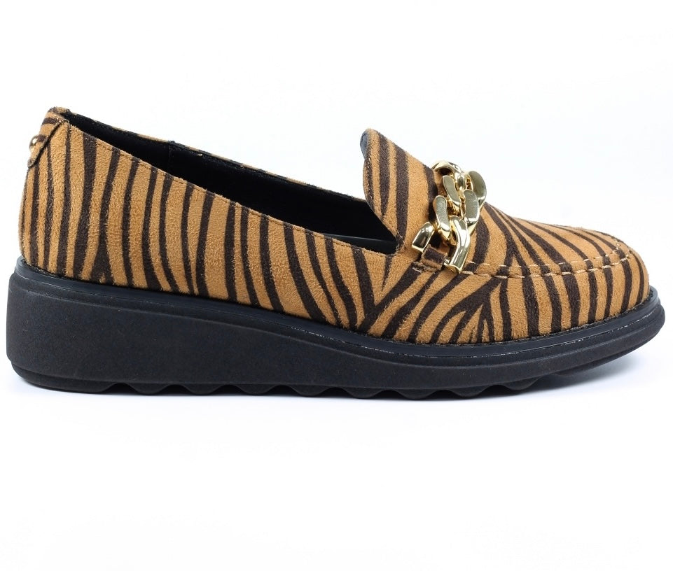 The Serene, a smart, suede loafer with chain detailing to the upper. The Serene is the perfect loafer, it offers a low wedge and a padded insole for maximum comfort and can easily carry you from the office to drinks with maximum style.