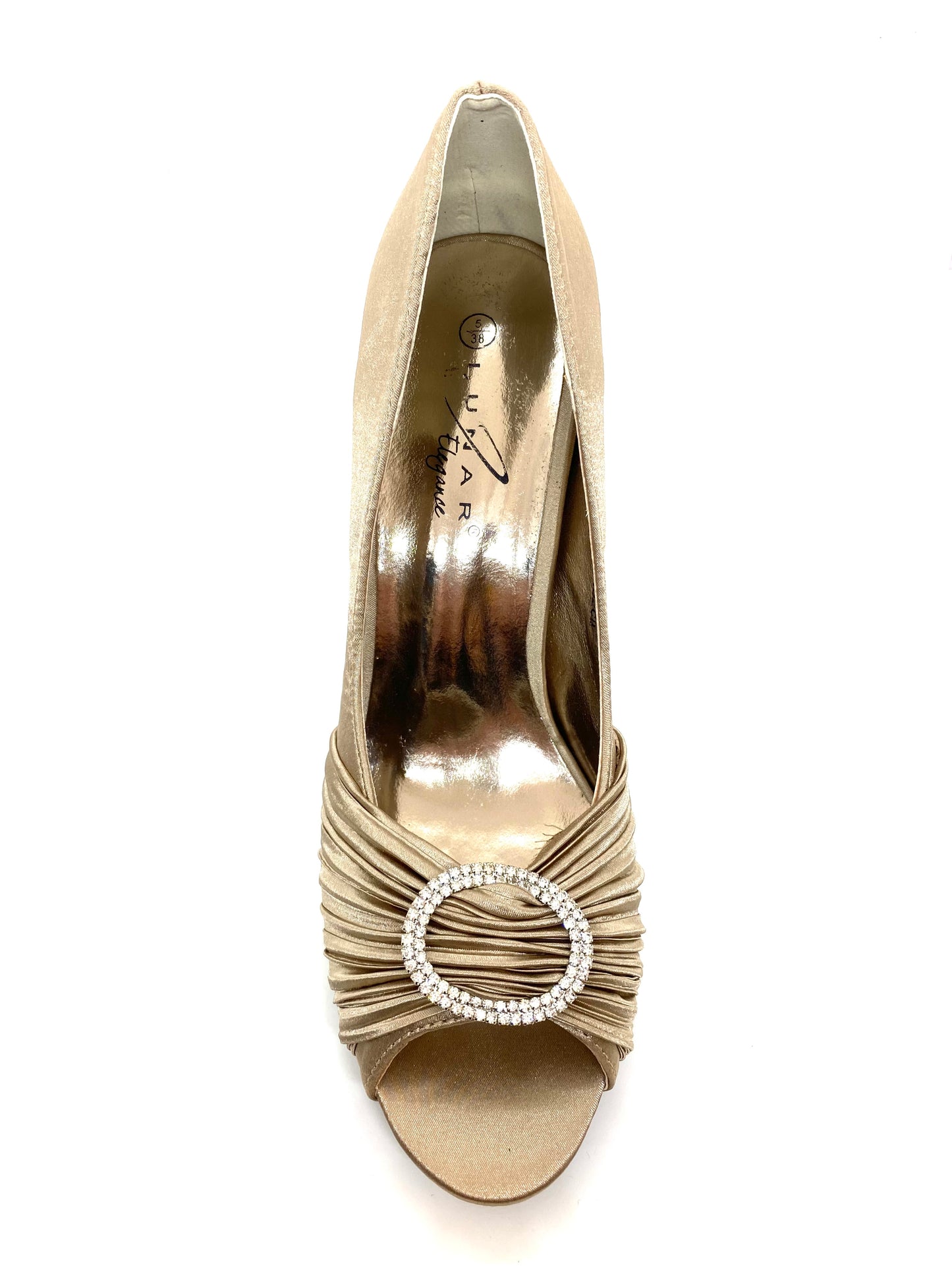 The 'Sienna' peep toe heel is an all-time best selling evening style, it's not hard to see why. The heel height is perfect and the intricate pleated detail with a diamante accent gives the shoe an elegant touch. The perfect option for the mother of the bride and wedding guests.