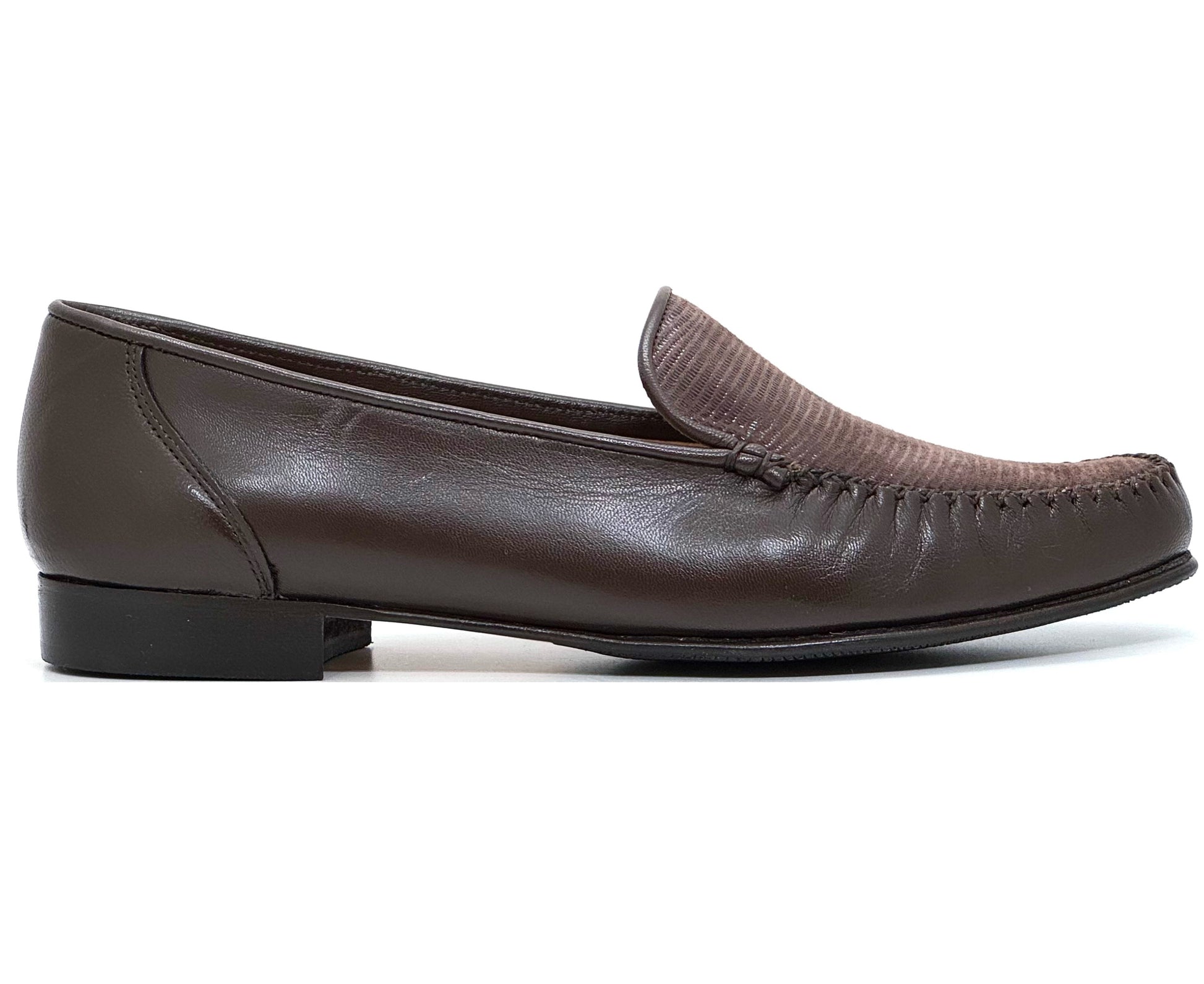 HB Shoes Madison is a classically designed Moccasin and a staple style for the brand from the HB Italia collection. Dark brown Leather and contrasting brown printed leather vamp. A perfect companion for your casual outfits.