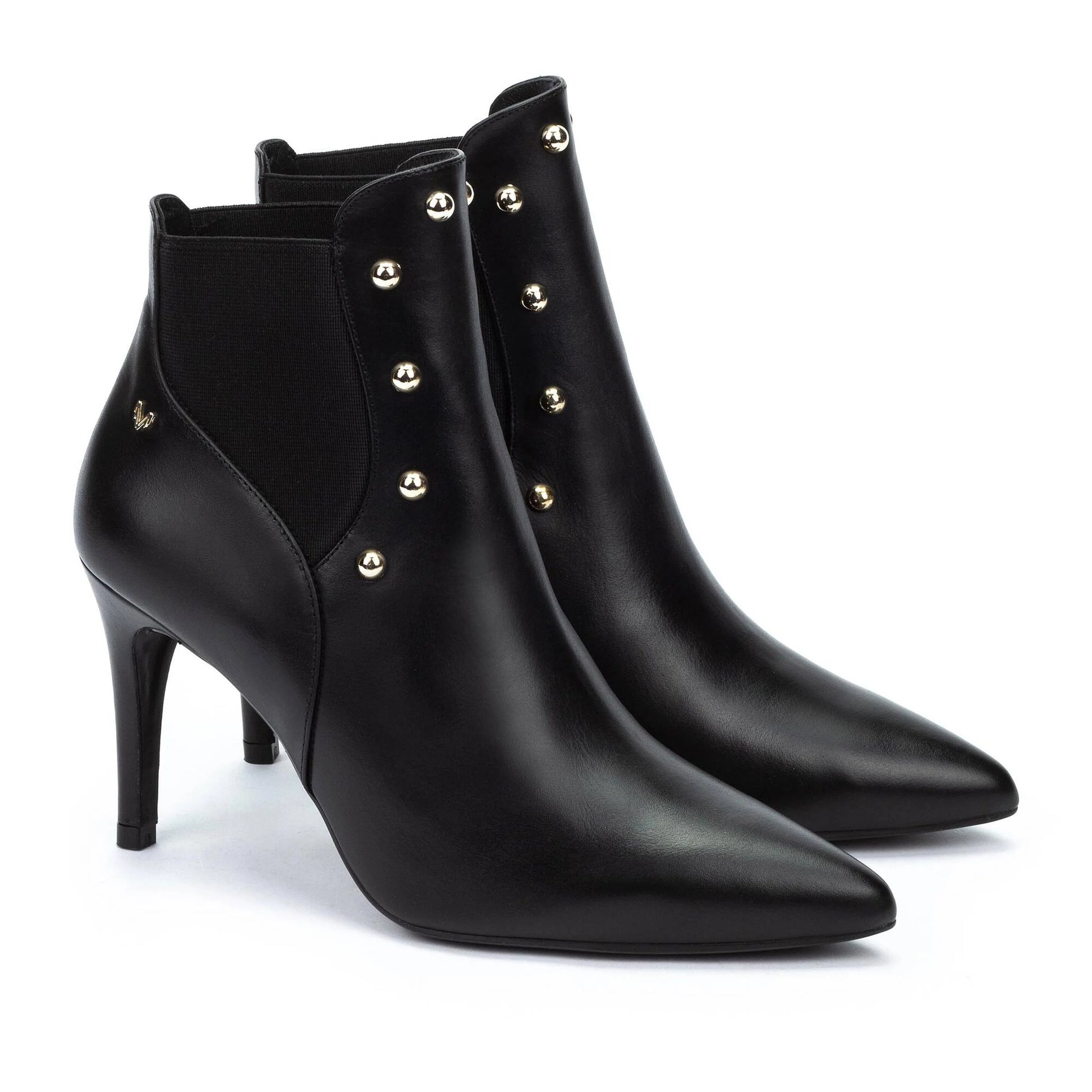 Thelma heeled ankle boots. Crafted in leather, featuring a 9 cm stiletto heel and pointed toe; adorned with studs. Elevate everyday with New Elegance, updated sophistication and comfort.