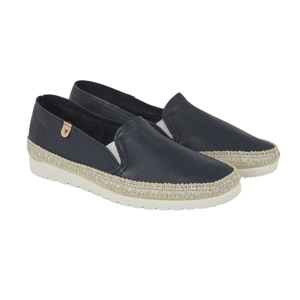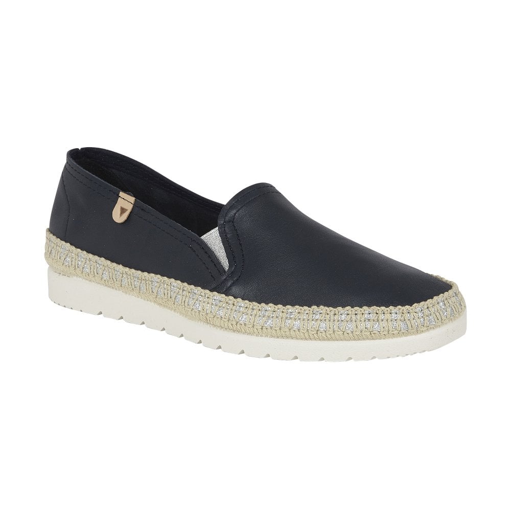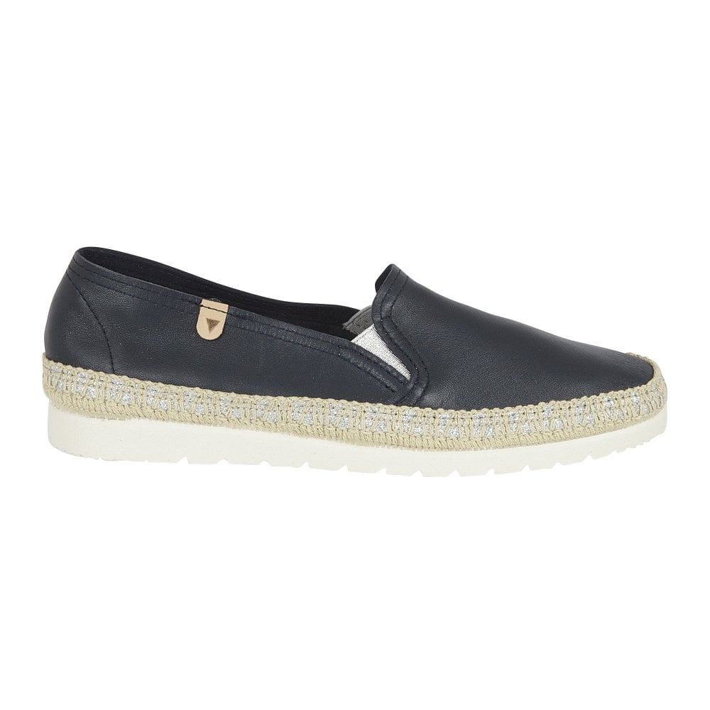 From Verbenas an navy espadrille made in soft leather with braided detail with silver elastic on the instep for a better fit and rubber sole. Made in Spain .