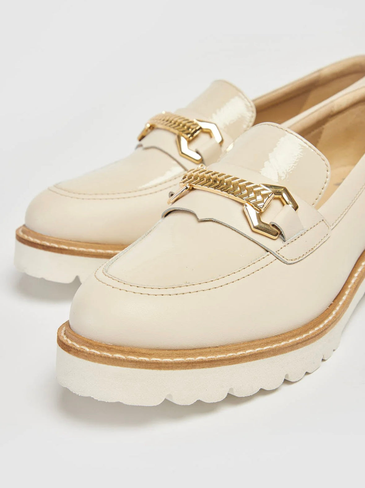 A new take on a classic loafer, the KENDAL features gold metal snaffle, and premium leathers in summer colourways. The chunky sole gives an added edge to an otherwise classic style. Style yours with trousers or dresses alike.