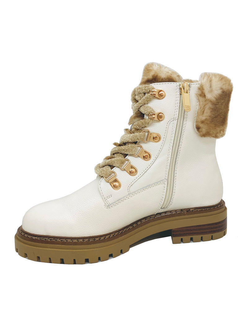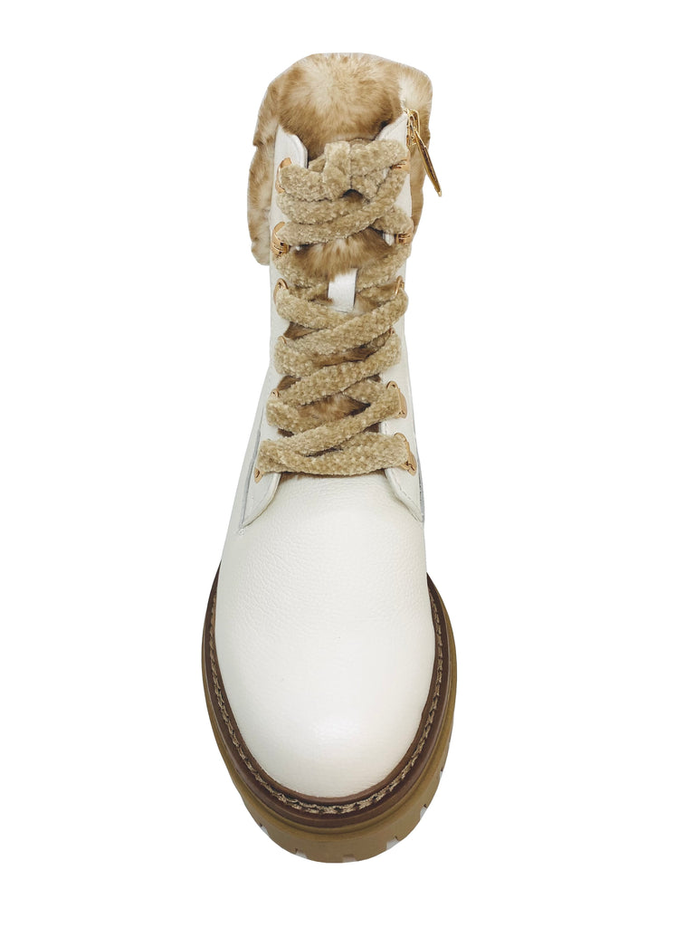 Details: Interior zipper, round cotton wax laces, faux fur and metal-gun hardware. Removable insole.