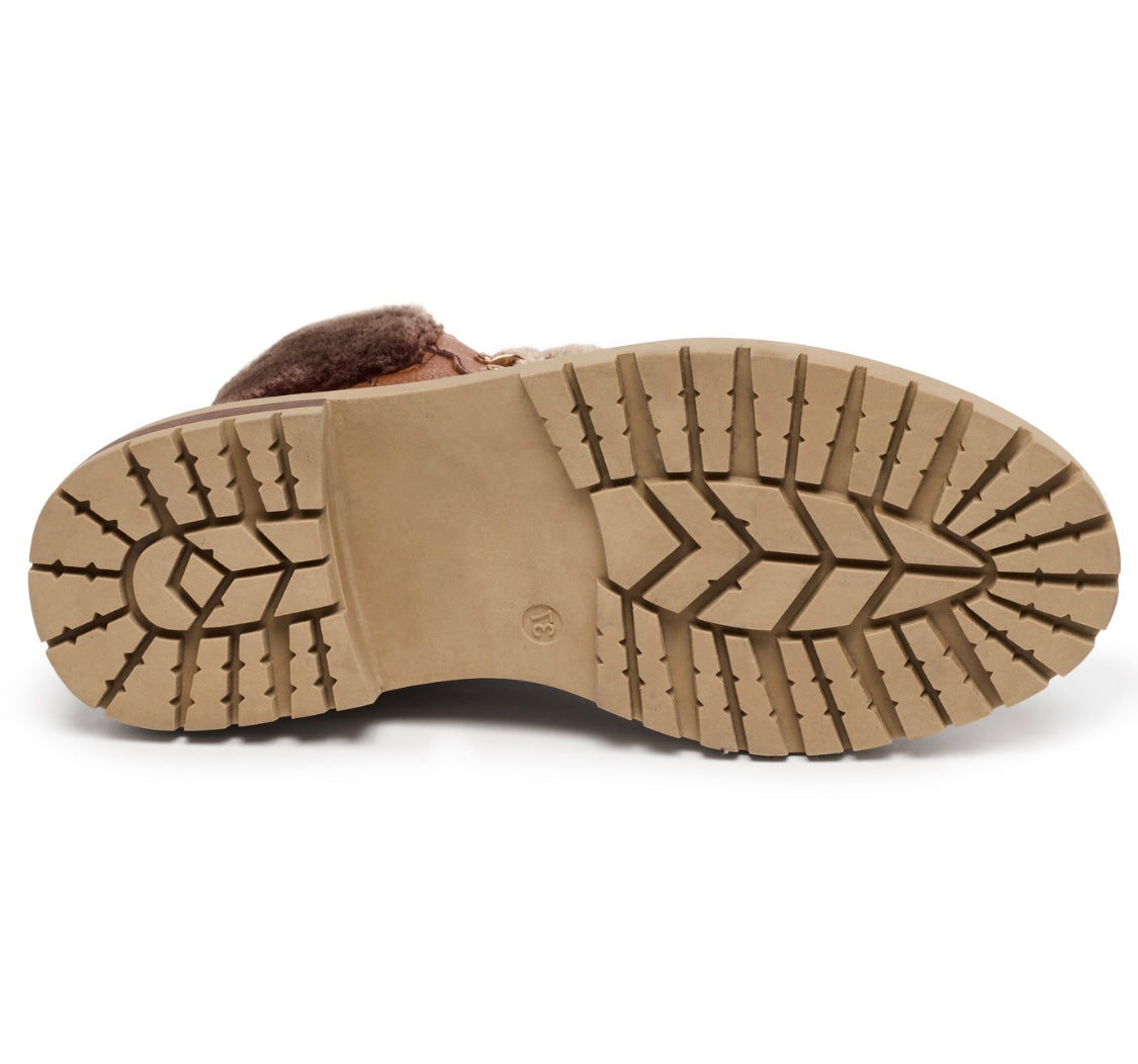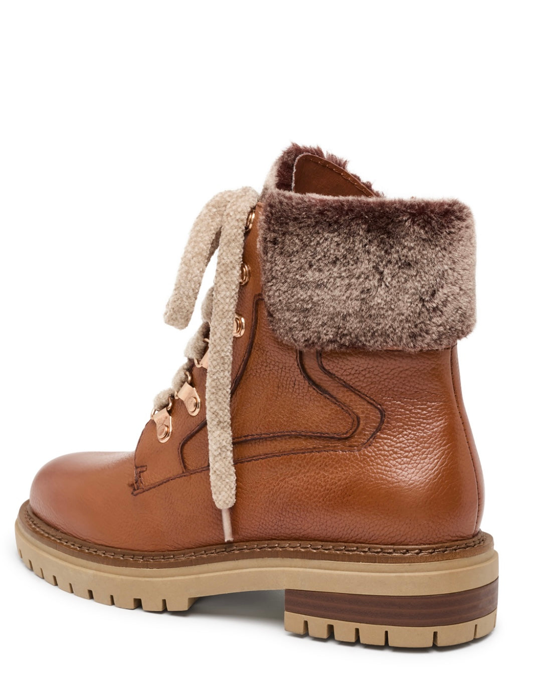 Details: Interior zipper, round cotton wax laces, faux fur and metal-gun hardware. Removable insole.