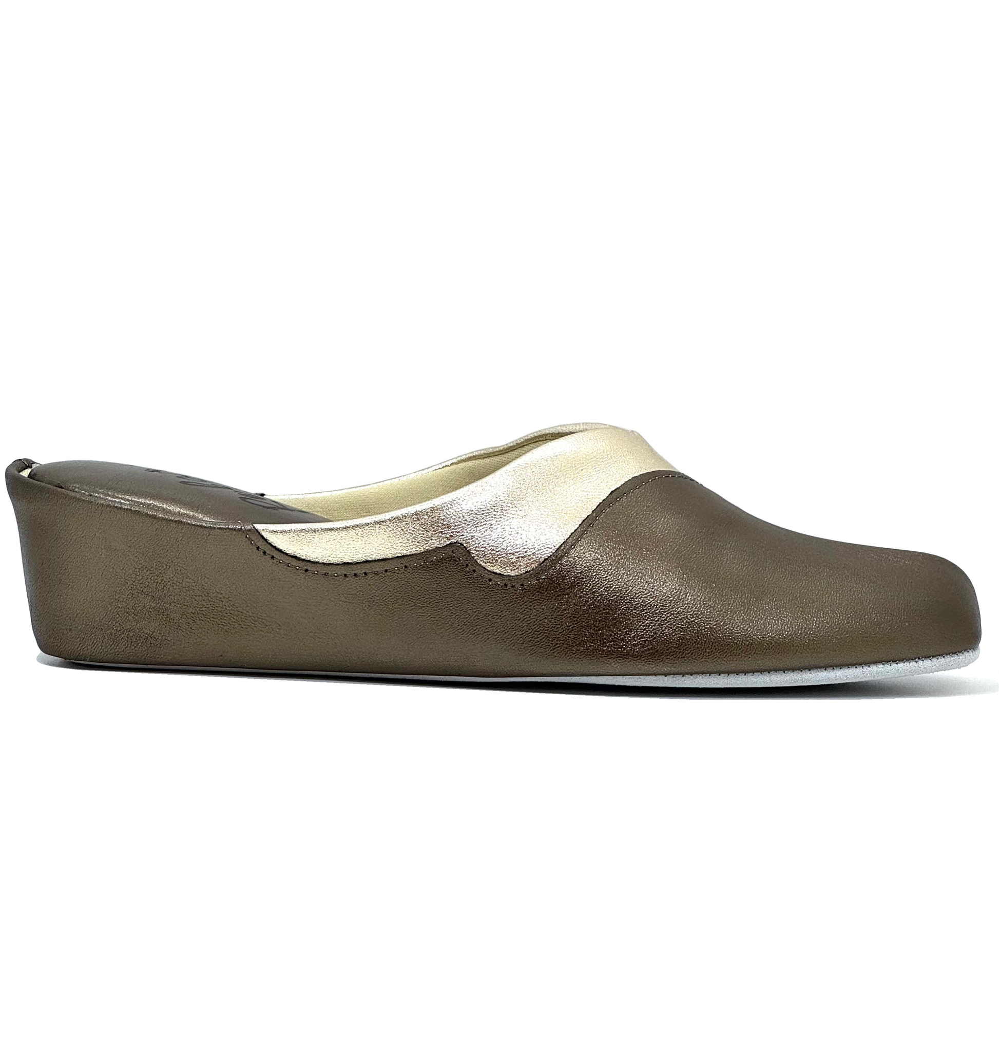Messina from Relax Slippers are stunning leather slippers with gold trim detail.
