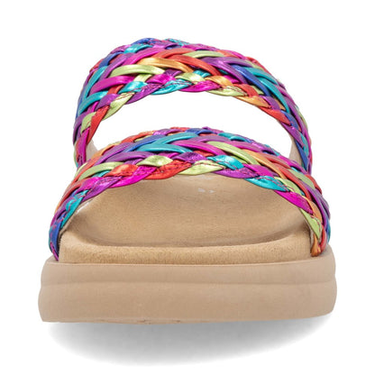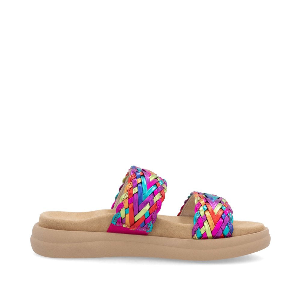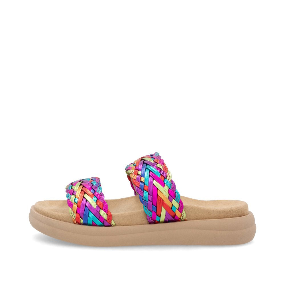 A vibrant multi-coloured woven finish on the two overfoot straps, this sandal is as eye-catching as it is comfortable. The cushioned padded footbed offers maximum comfort for all-day wear, while the durable and lightweight TR sole makes it ideal for everyday use.