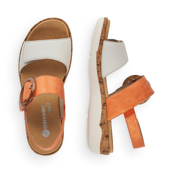 Ladies Pale Orange Sandals with Large Buckle Detail