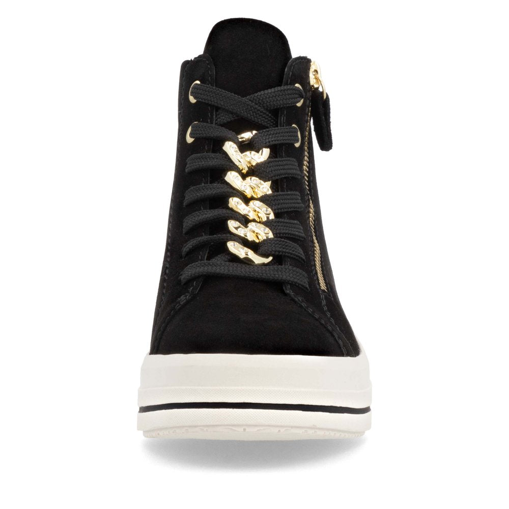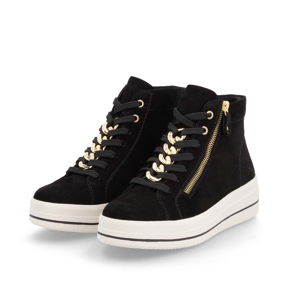 Remonte Ladies Chain Trim Lace Up Sneaker Boot in Black Suede.