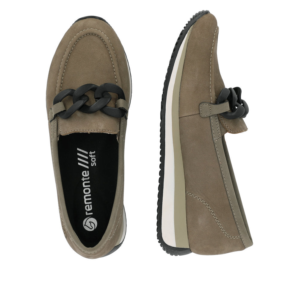 Remonte Ladies Chain Trim Sporty Loafer - Khaki Green