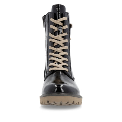 Featuring a sleek patent leather upper, these boots exude sophistication and style. The soft fleece lining provides exceptional warmth and comfort, perfect for cooler seasons. The textile insole ensures a cushioned fit, making these boots ideal for all-day wear.