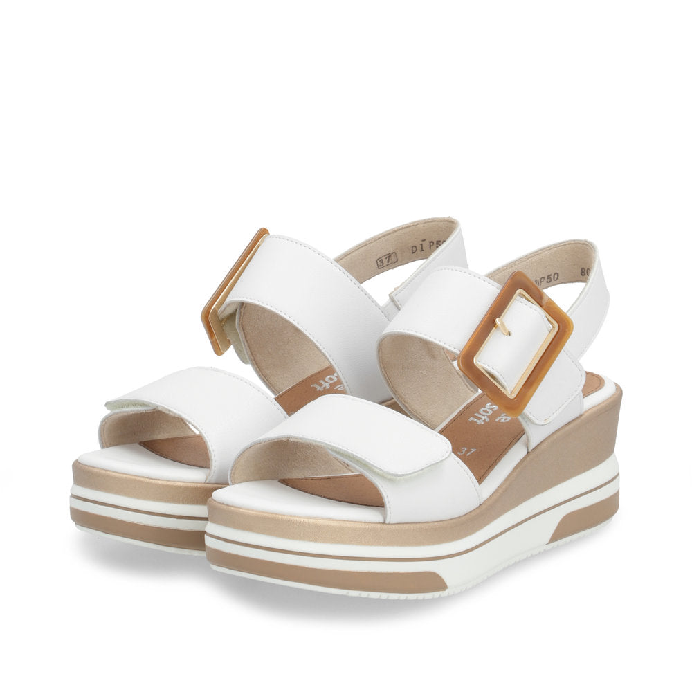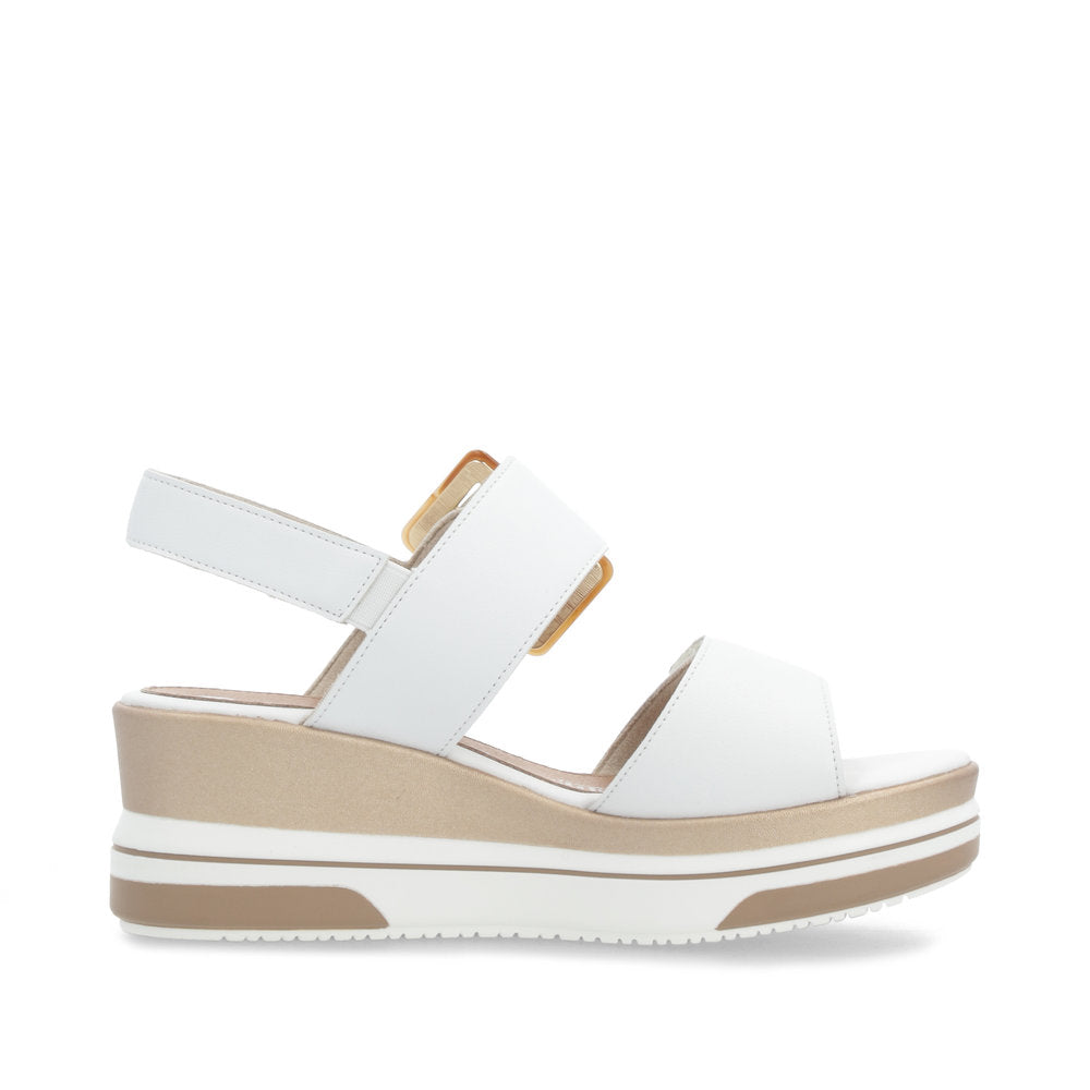 Elevate your summer outfits with a pair of these white wedge platform sandals, complete with a smooth leather upper and contemporary wedge heel measuring 5cm.
