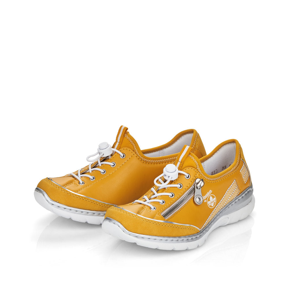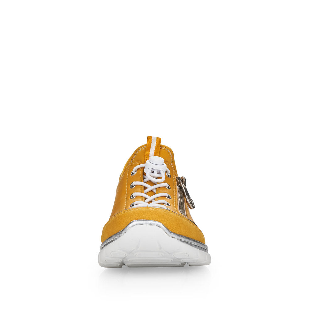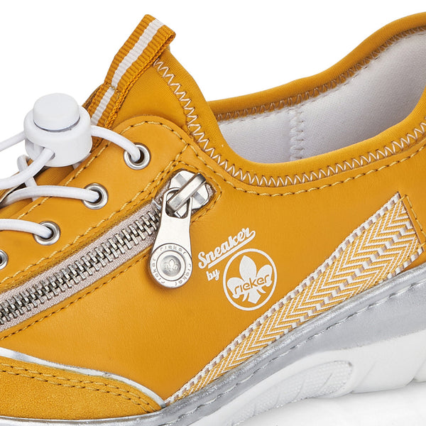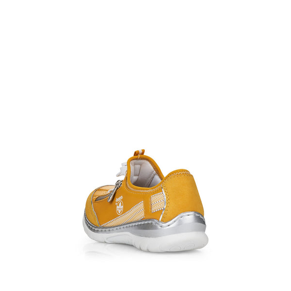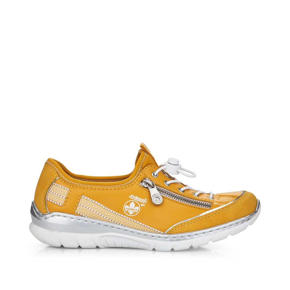 Ladies yellow casual shoes with elastic shoe lace and zipper detail