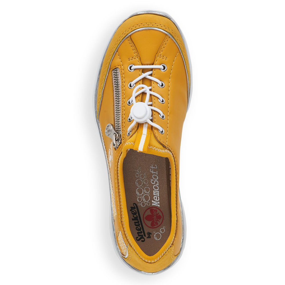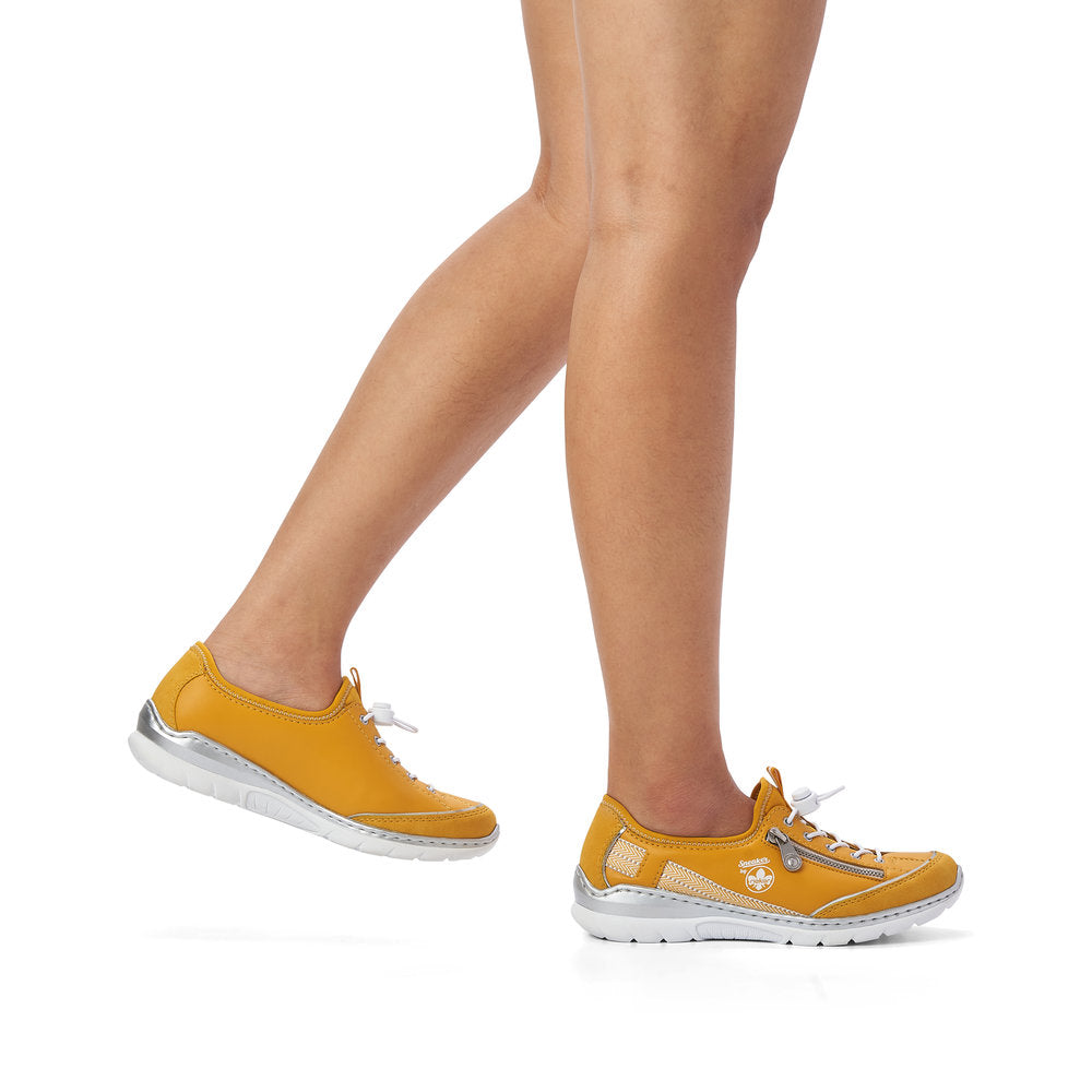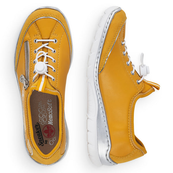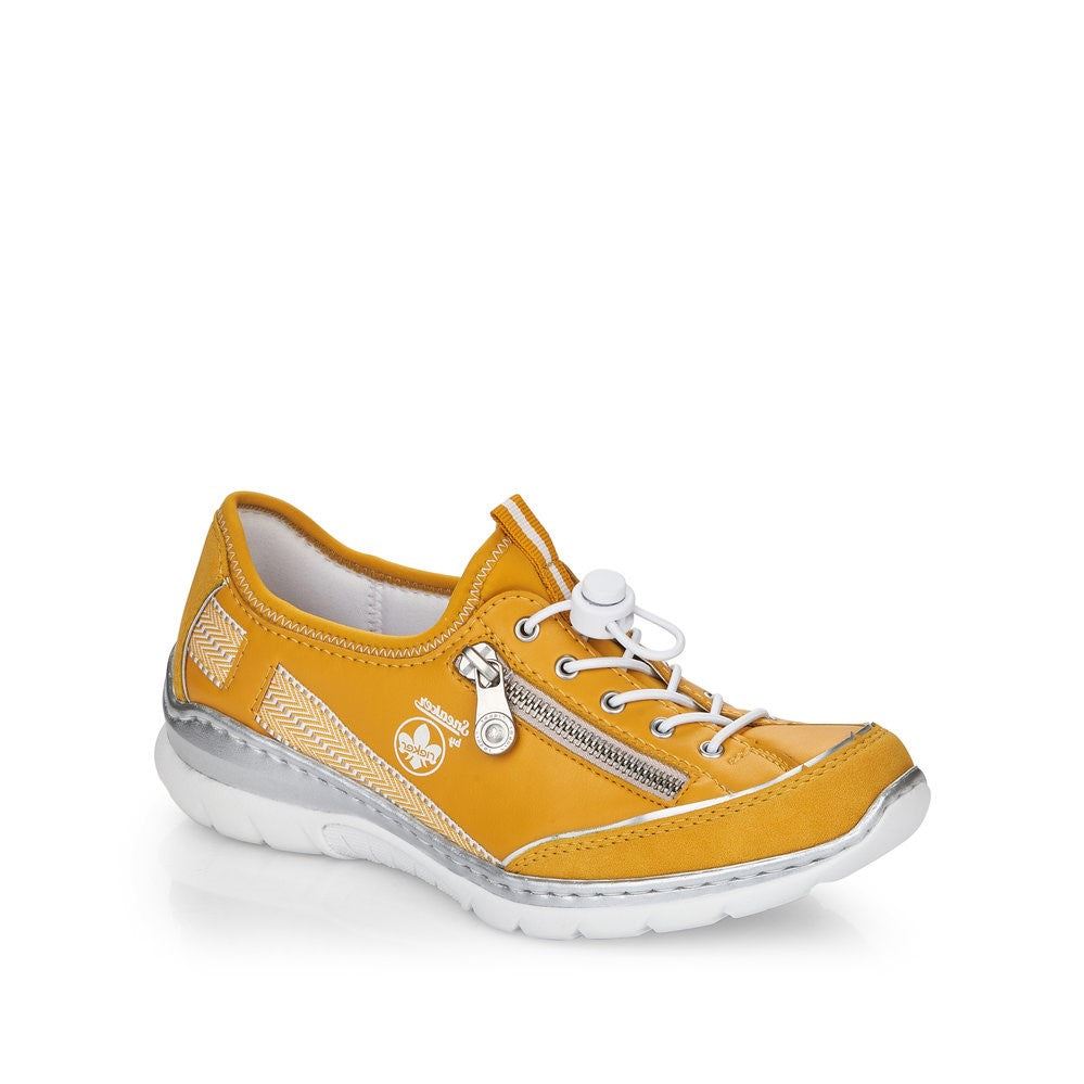Ladies yellow casual shoes with elastic shoe lace and zipper detail