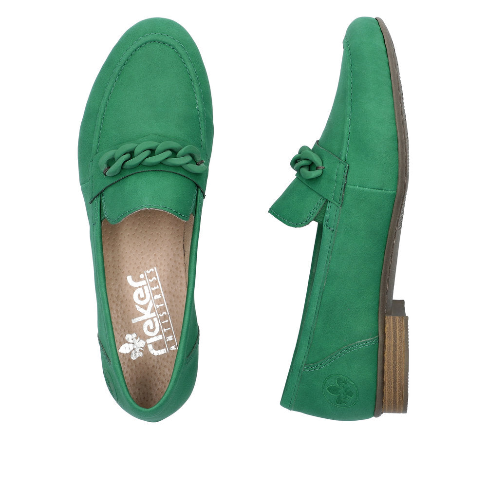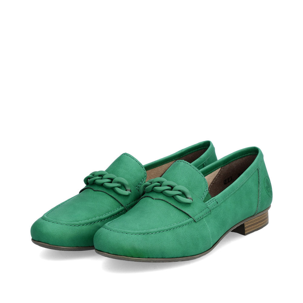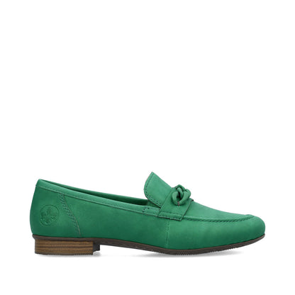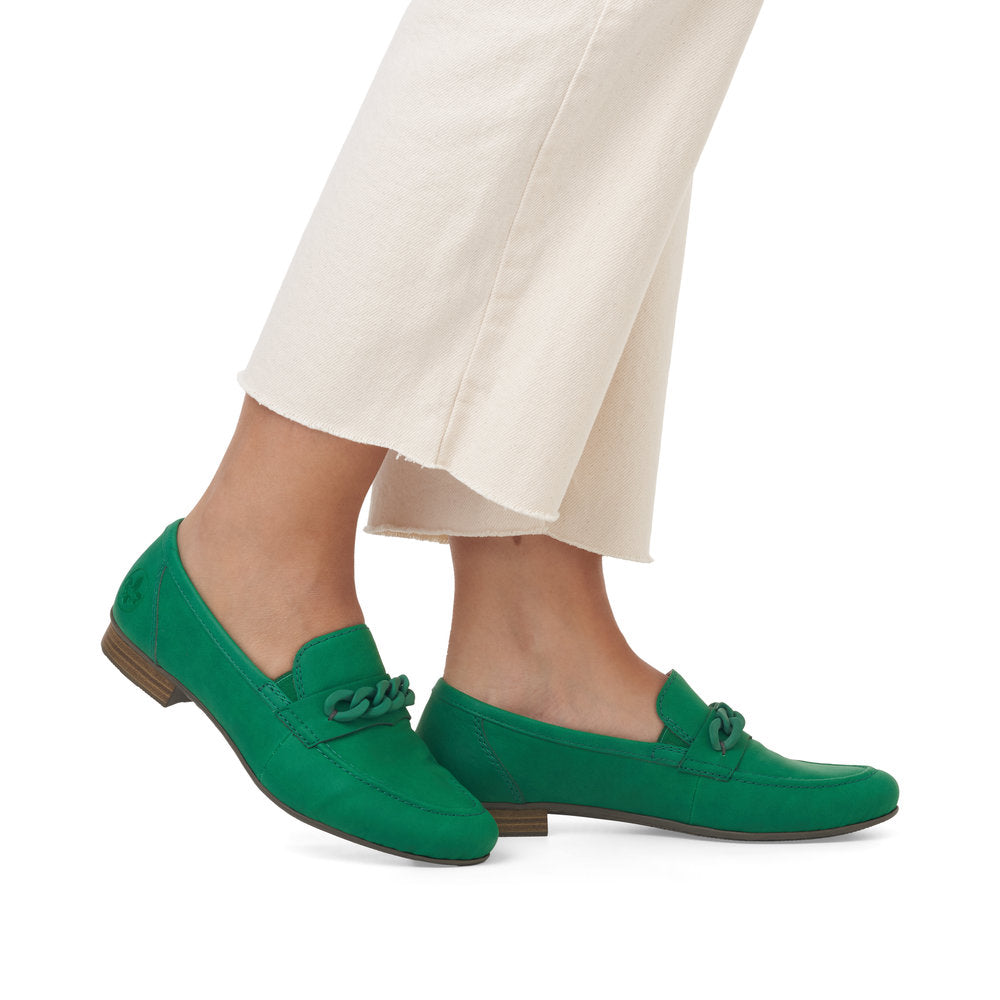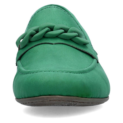 This emerald green loafer is a must-have, Its soft nubuck leather uppers, colour-matched decorative detailing, and discreet twin gussets provide easy fitting, while the cushioned leather footbed and stack effect low heel ensure maximum comfort. The lightweight, flexible rubber sole adds to its durability, making it the perfect shoe for any occasion.