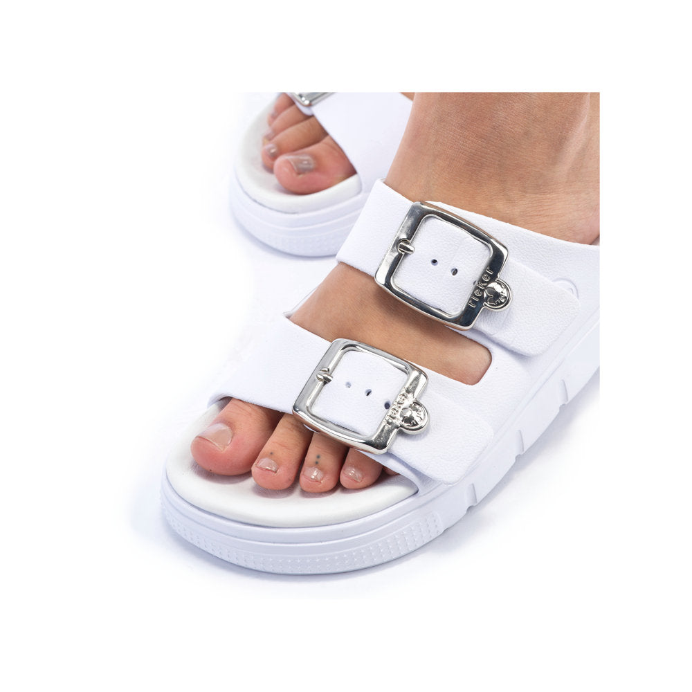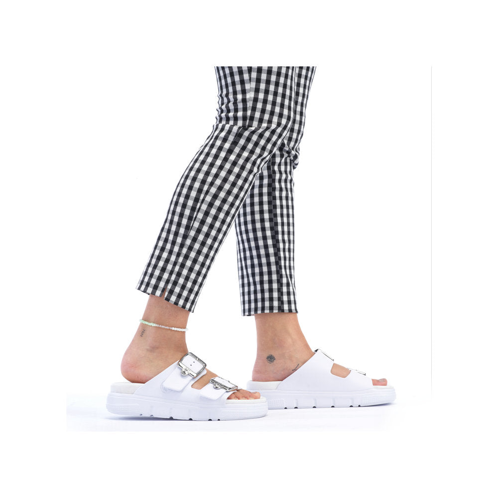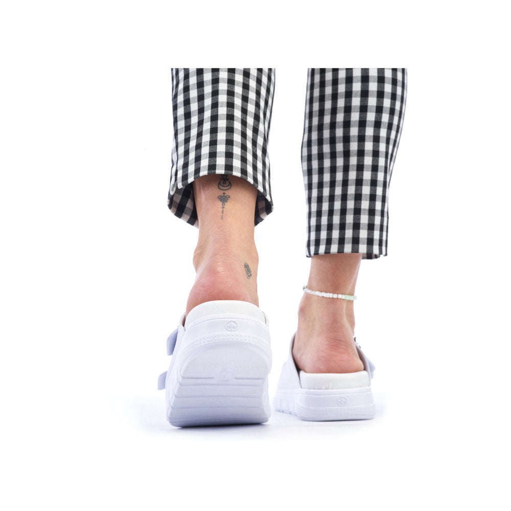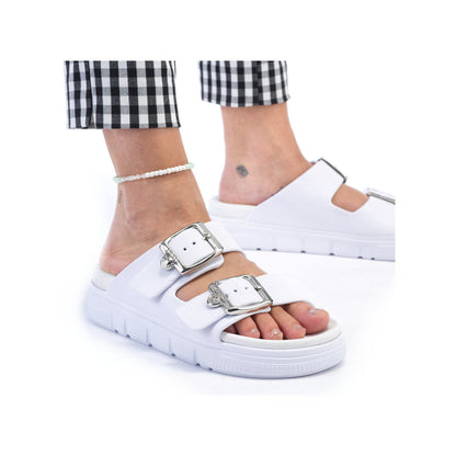These mules have a synthetic outsole with a platform height of 5 cm and offers you optimal cushioning while walking. The upper, as well as the insole, is made of a soft synthetic material that gently surrounds your foot. You can vary the length of the two straps with the help of the buckles.